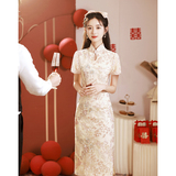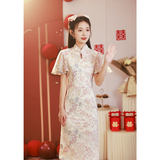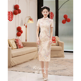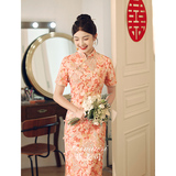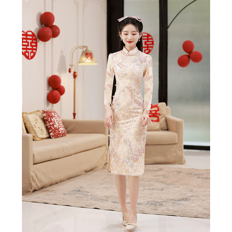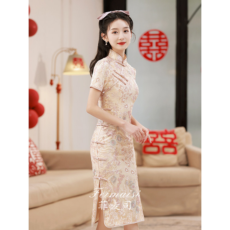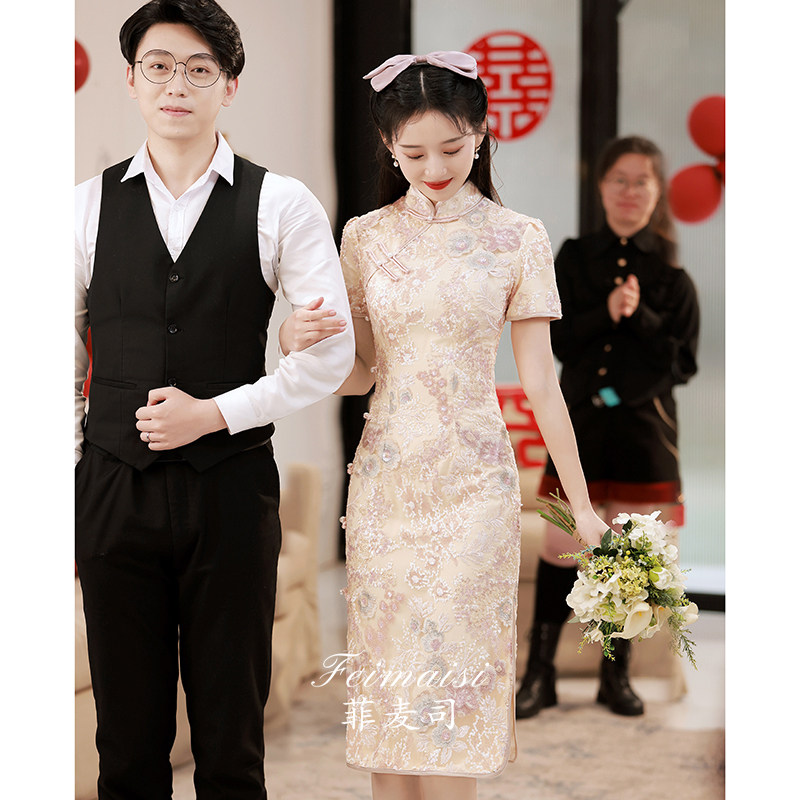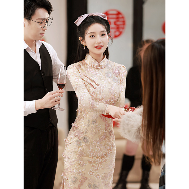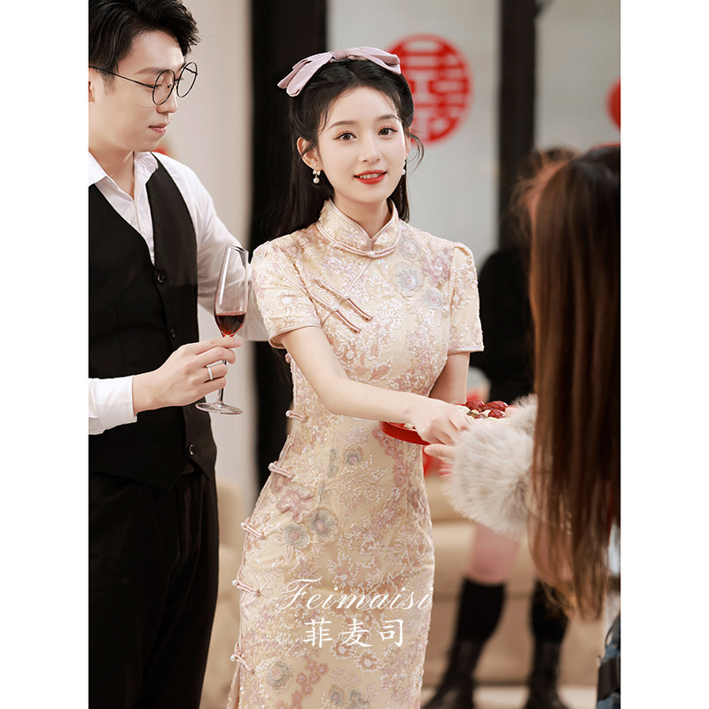 Ципао, вечернее платье, розовое элегантное свадебное платье, китайский стиль, изысканный стиль