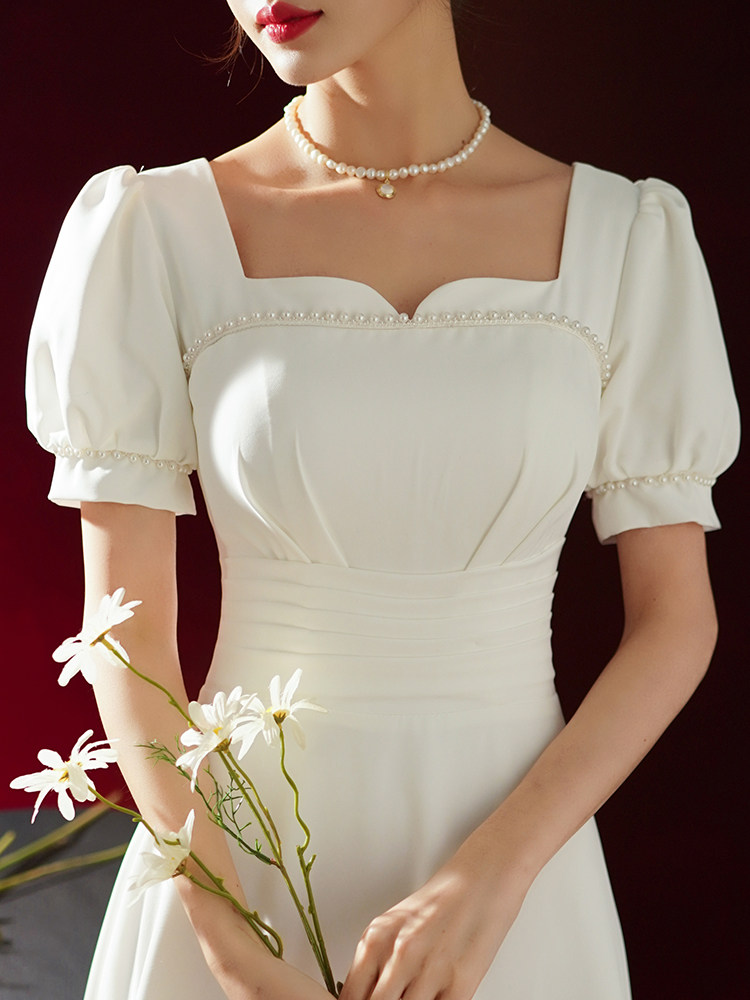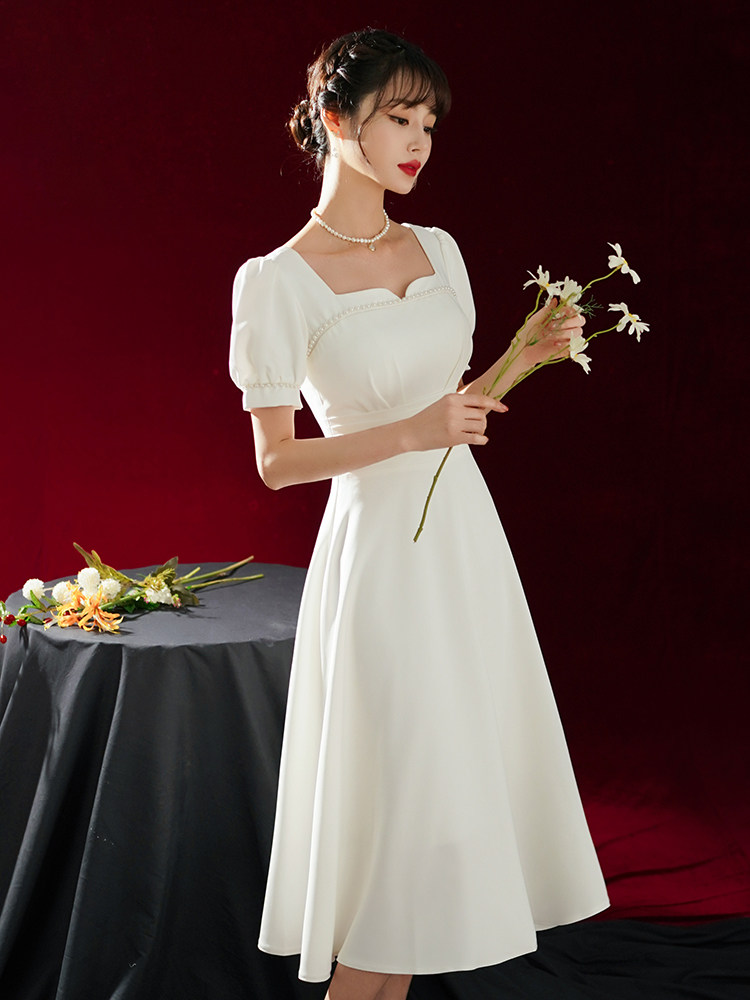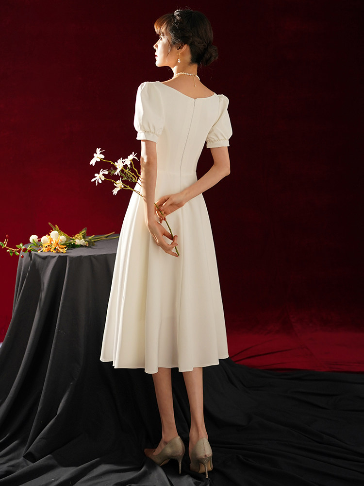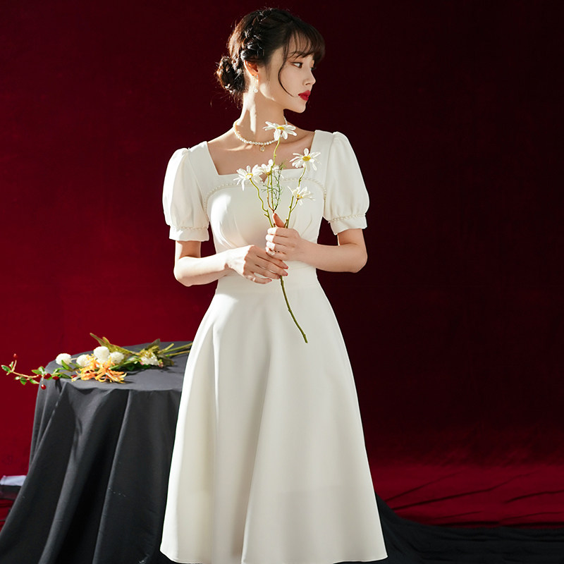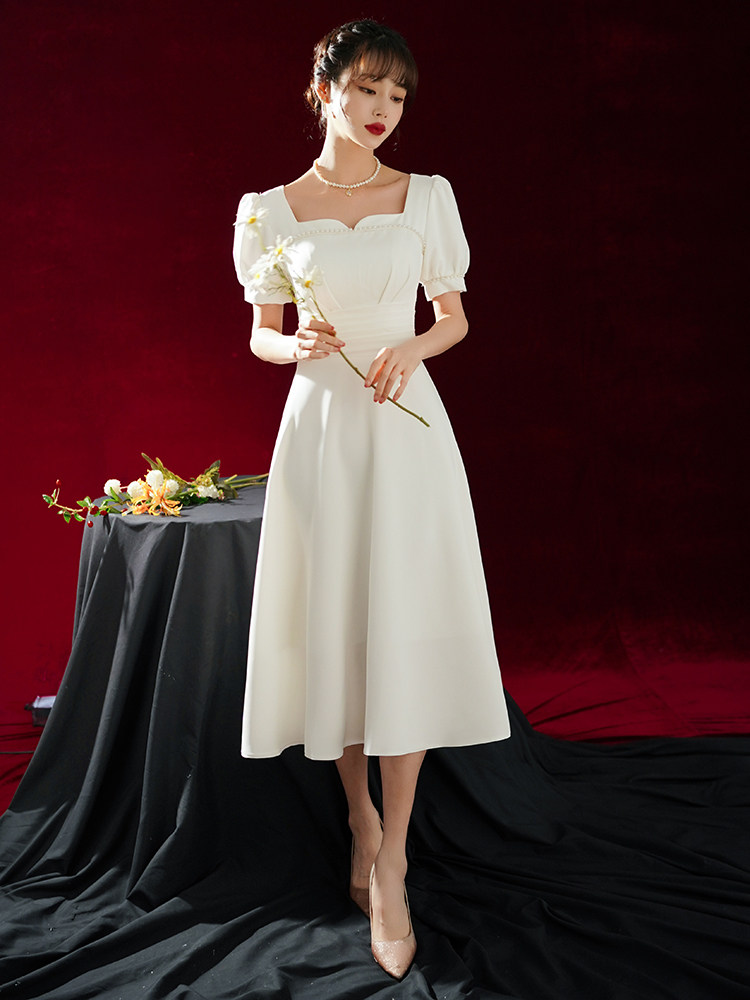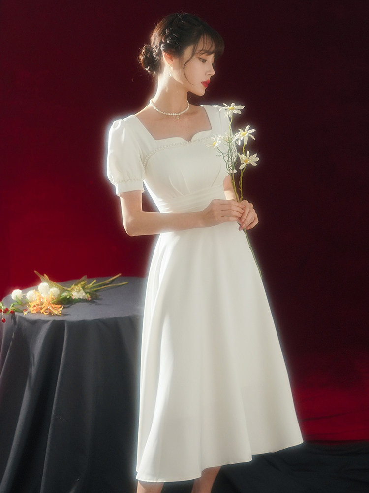Товары для покупки Легкое свадебное платье для французской помолвки, простая юбка, юбка Хепберн, регистрация сертификата Slim Look, маленькая белая юбка, повседневная одежда
