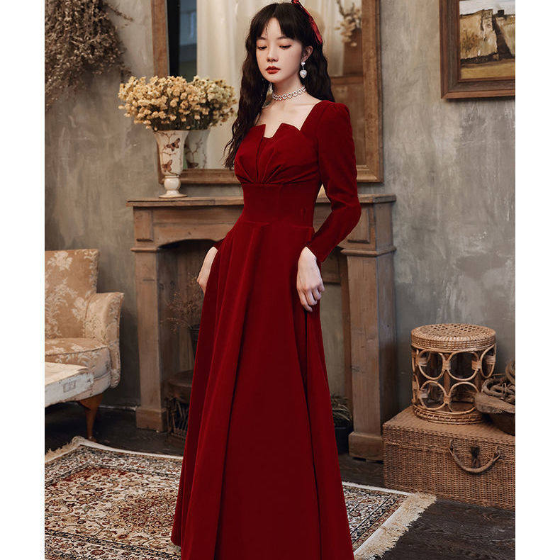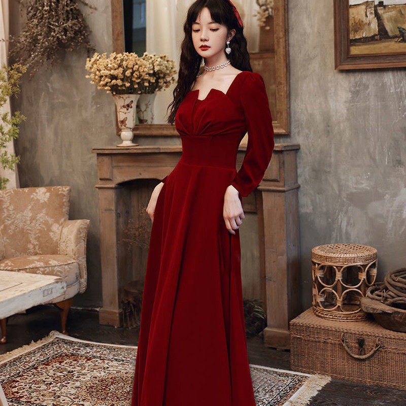 Бордовое осеннее вечернее платье