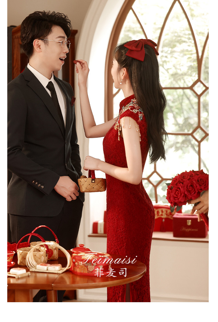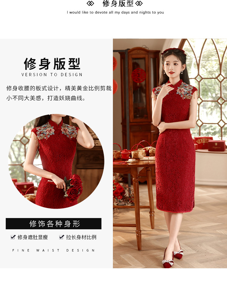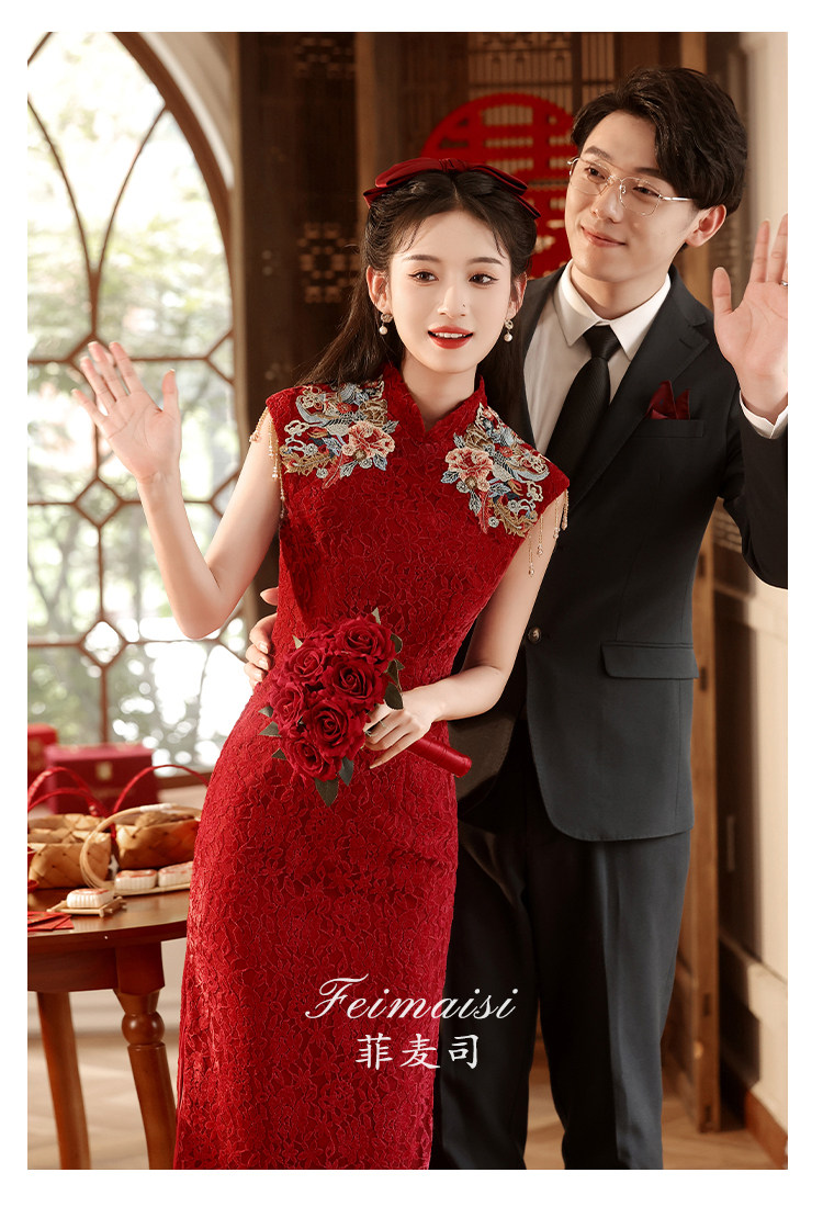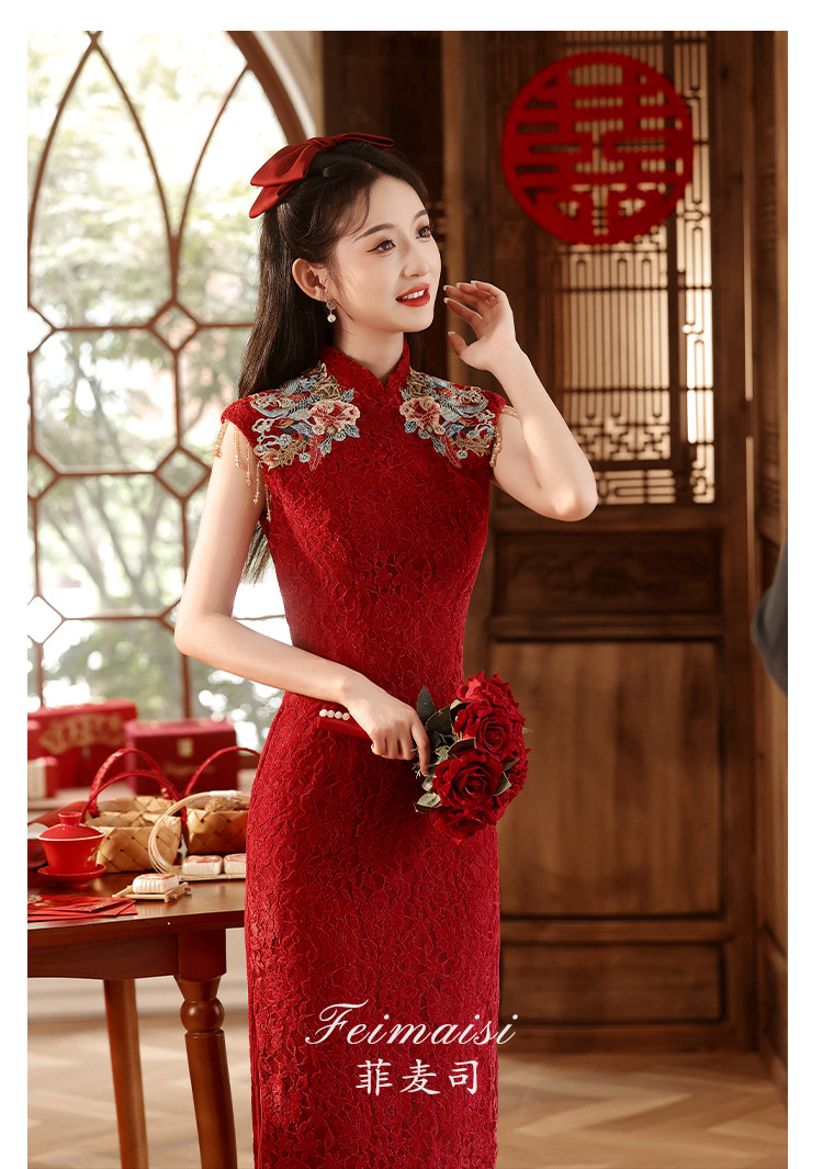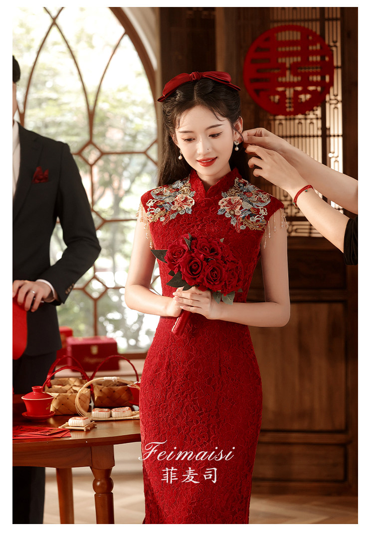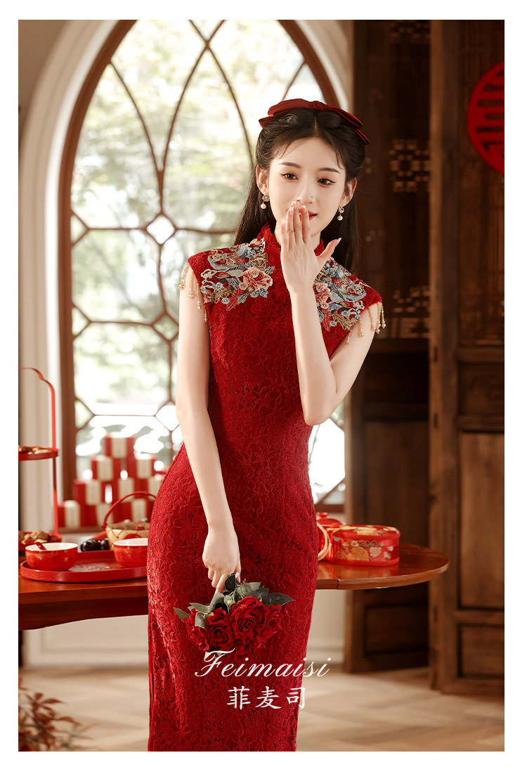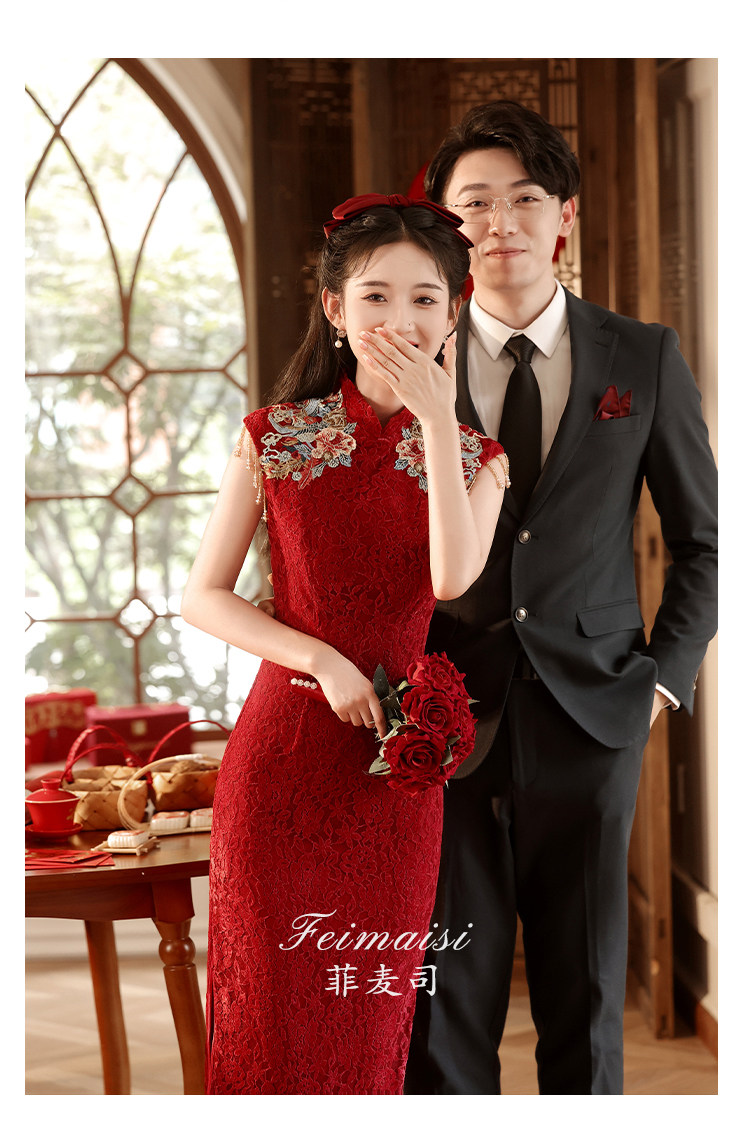 Ципао, бордовое вечернее платье, юбка, свадебное платье, китайский стиль, с вышивкой, подходит для подростков