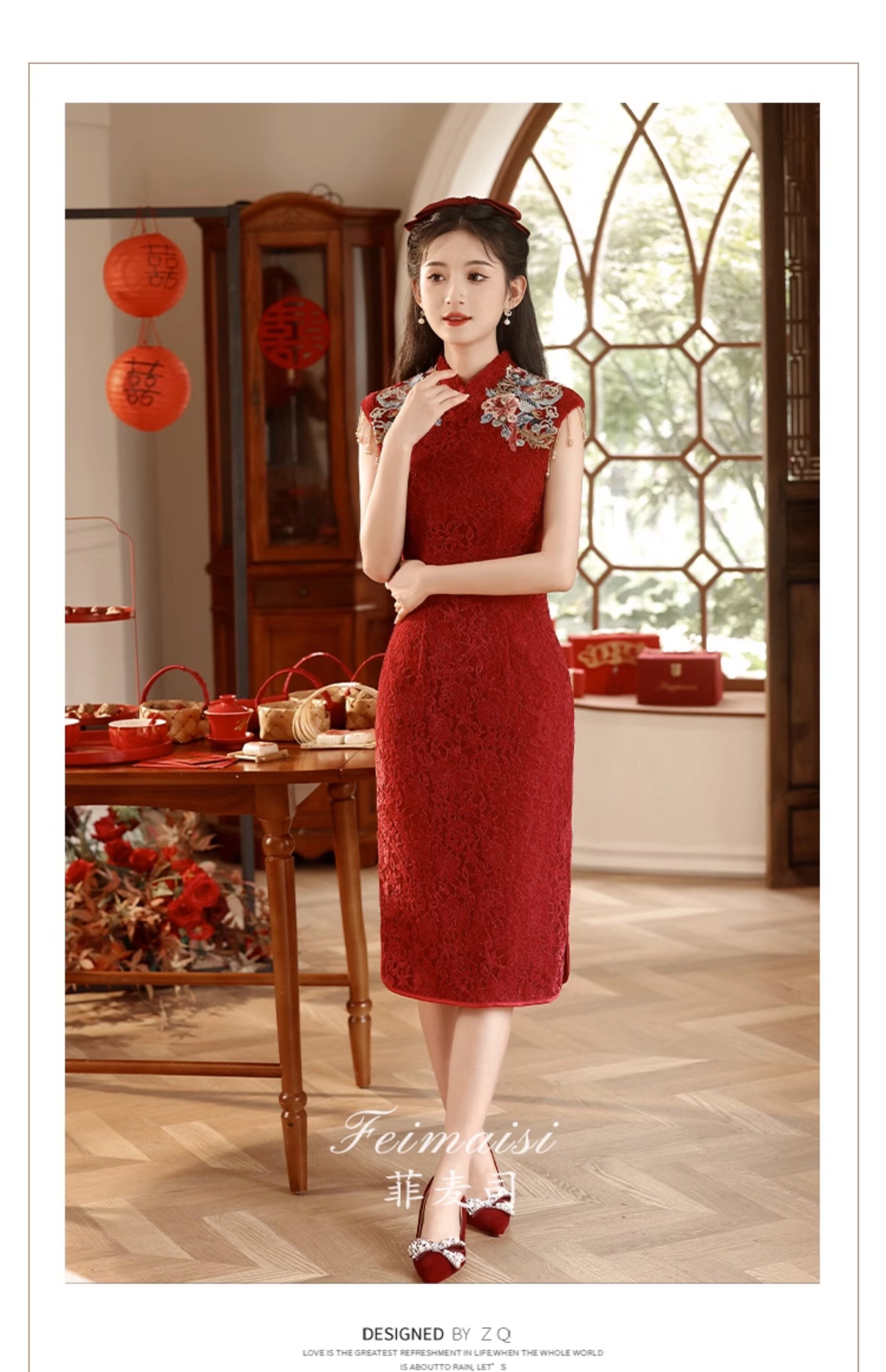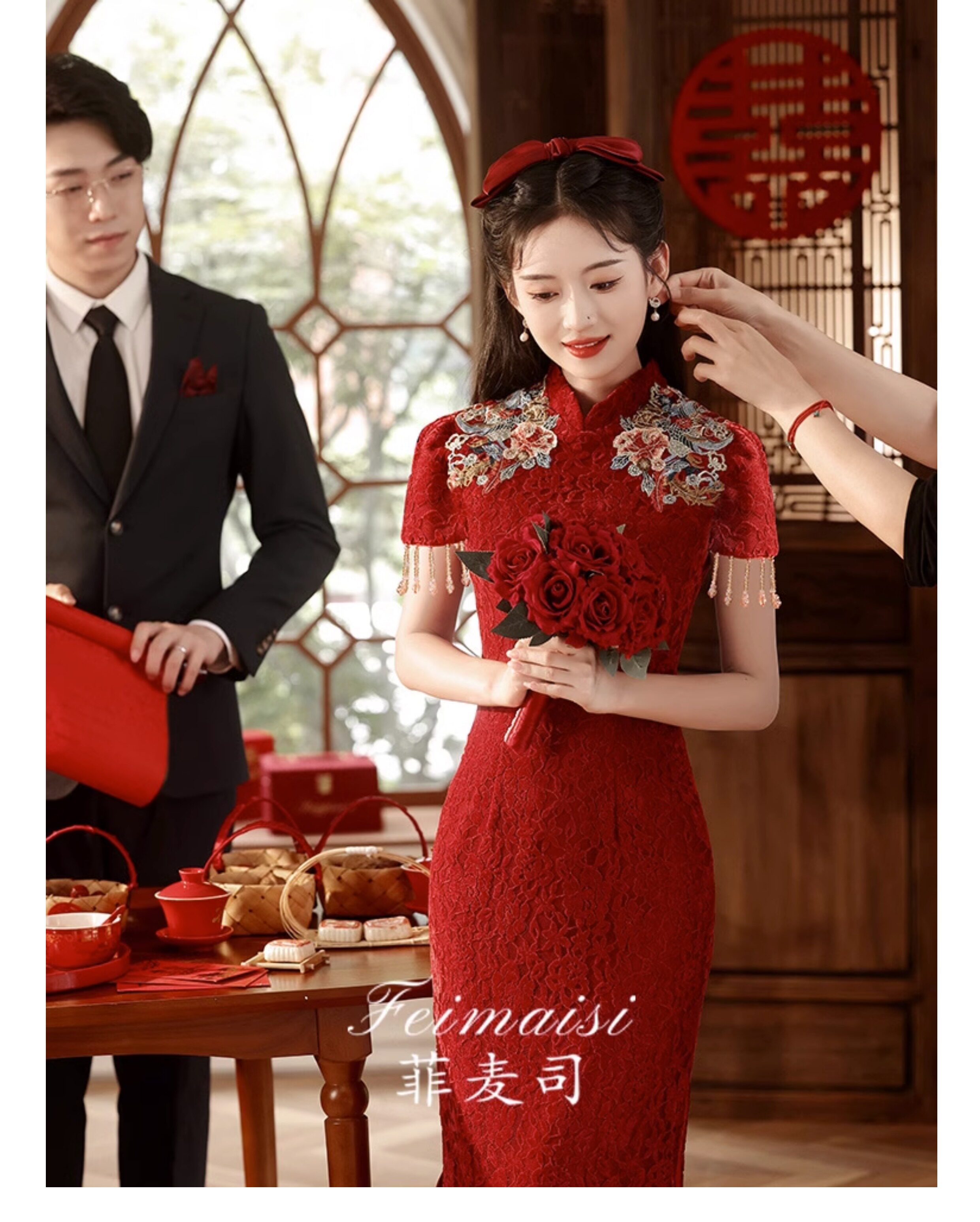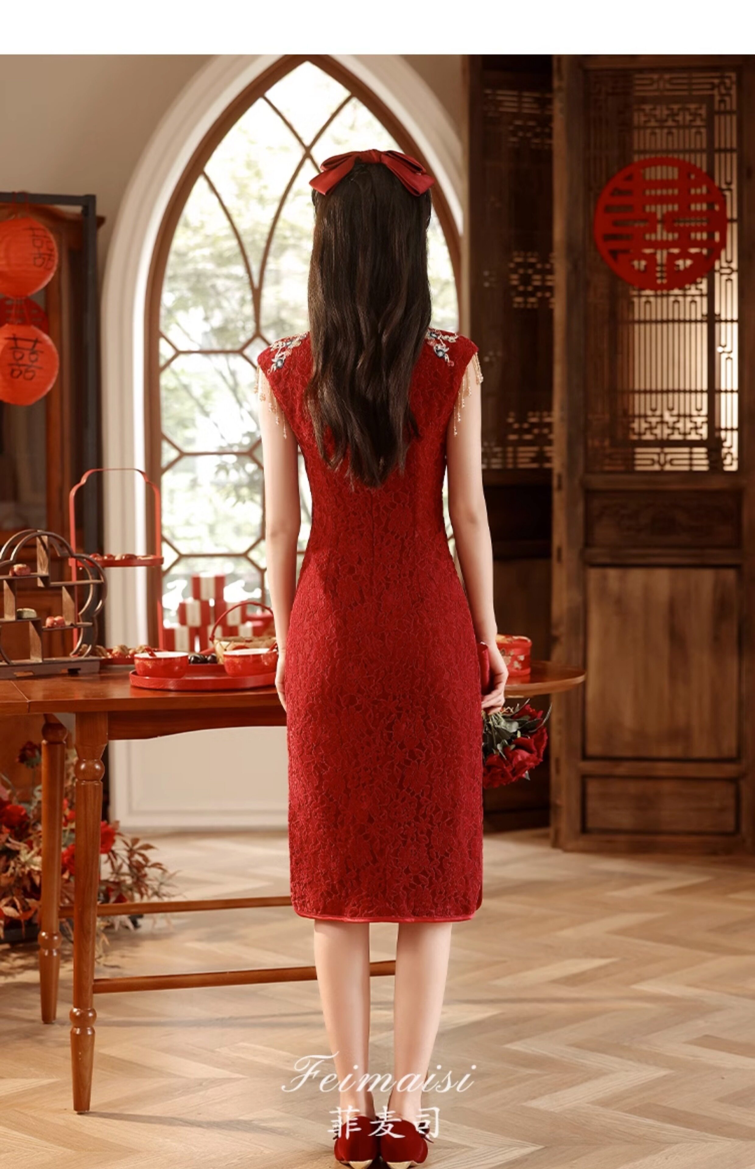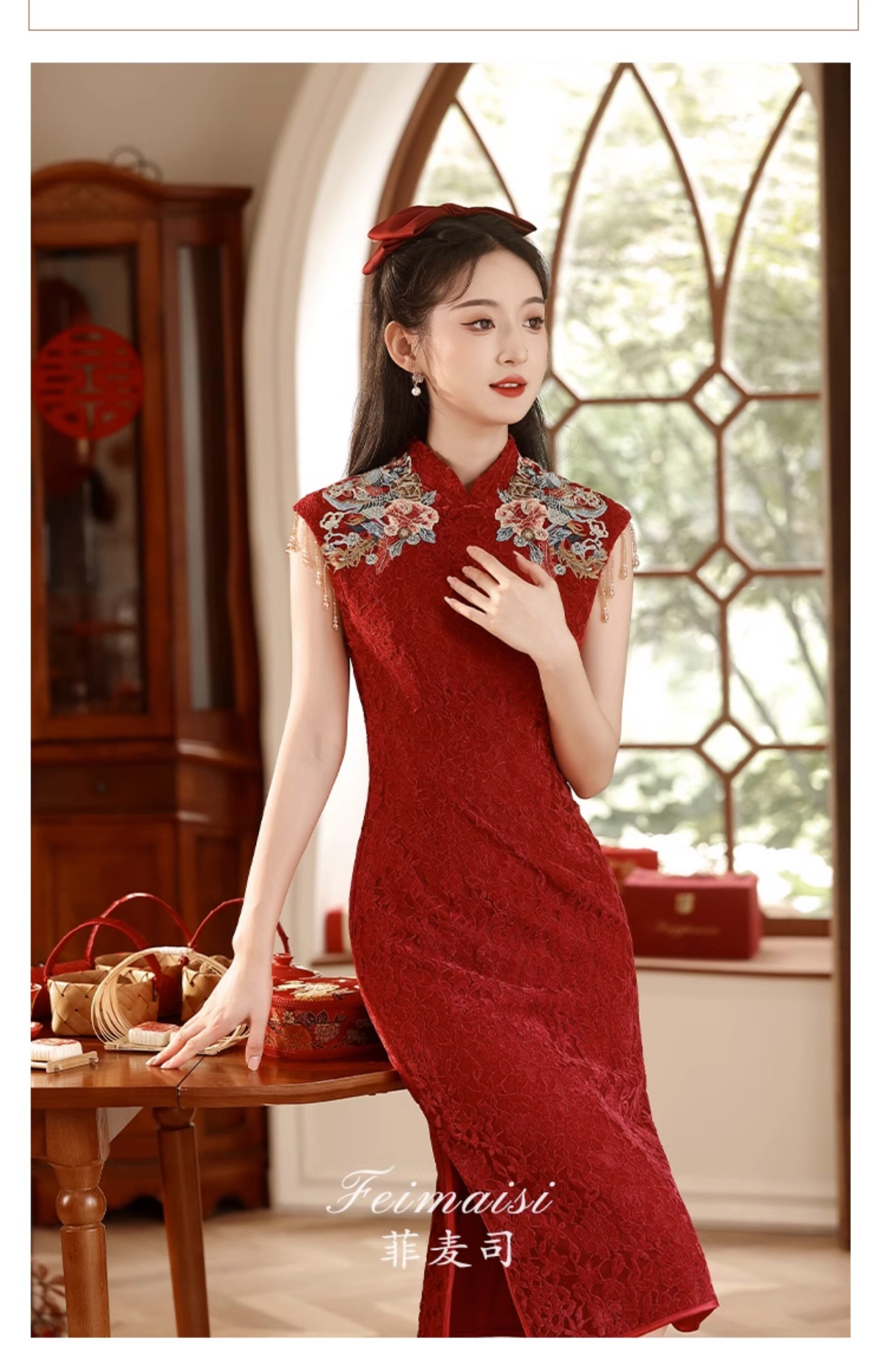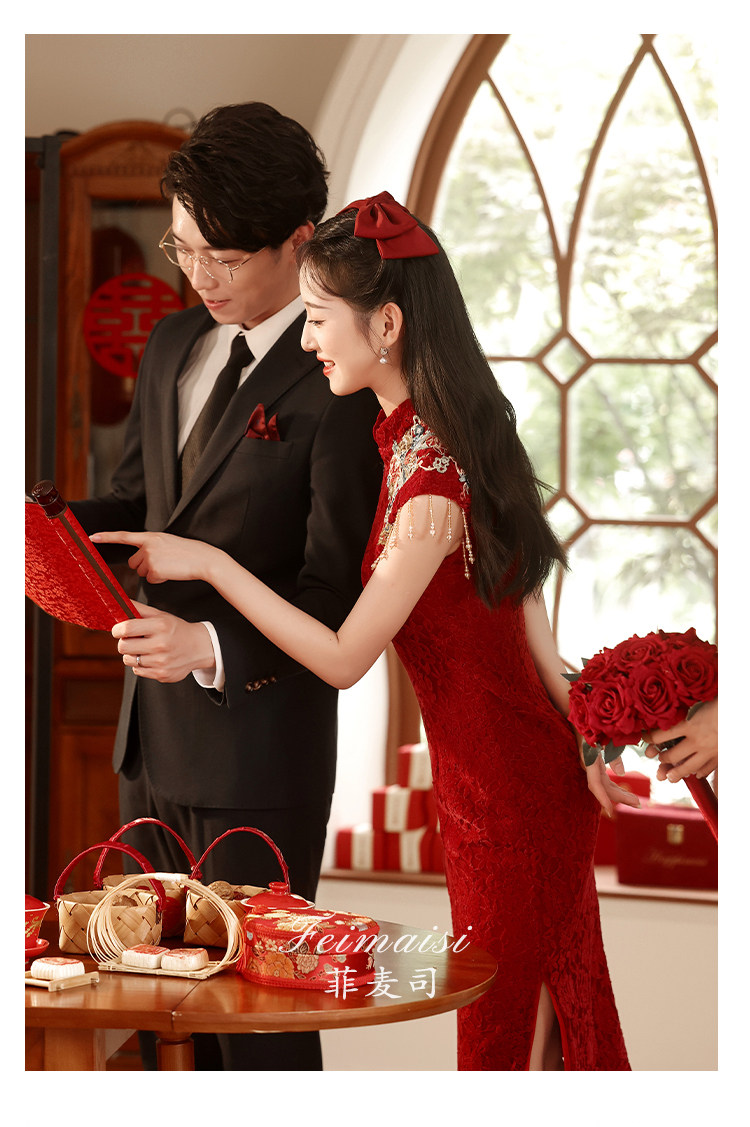 Ципао, бордовое вечернее платье, юбка, свадебное платье, китайский стиль, с вышивкой, подходит для подростков