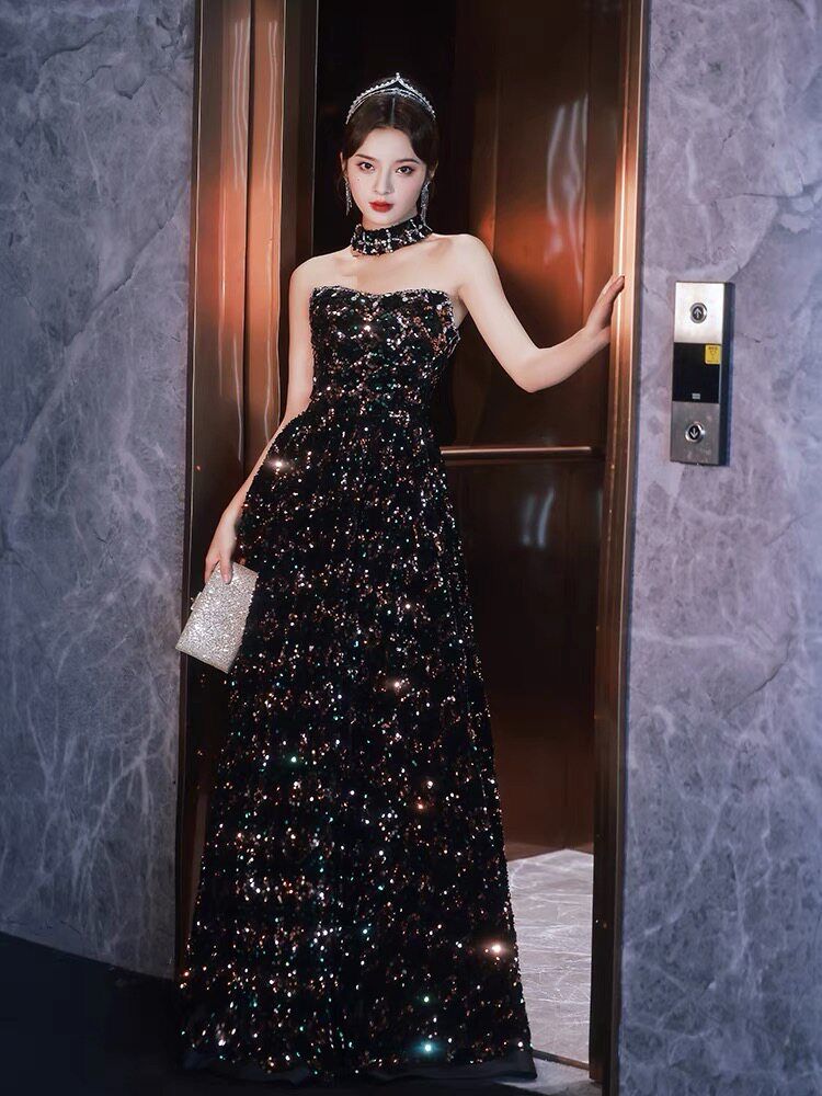 Вечернее платье, блестки для ногтей, костюм, новая коллекция, облегающий крой, большой размер