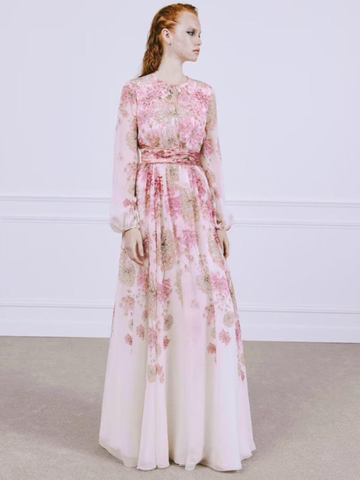 Осенняя розовая длинная юбка, платье, европейский стиль, 2023, премиум класс, цветочный принт