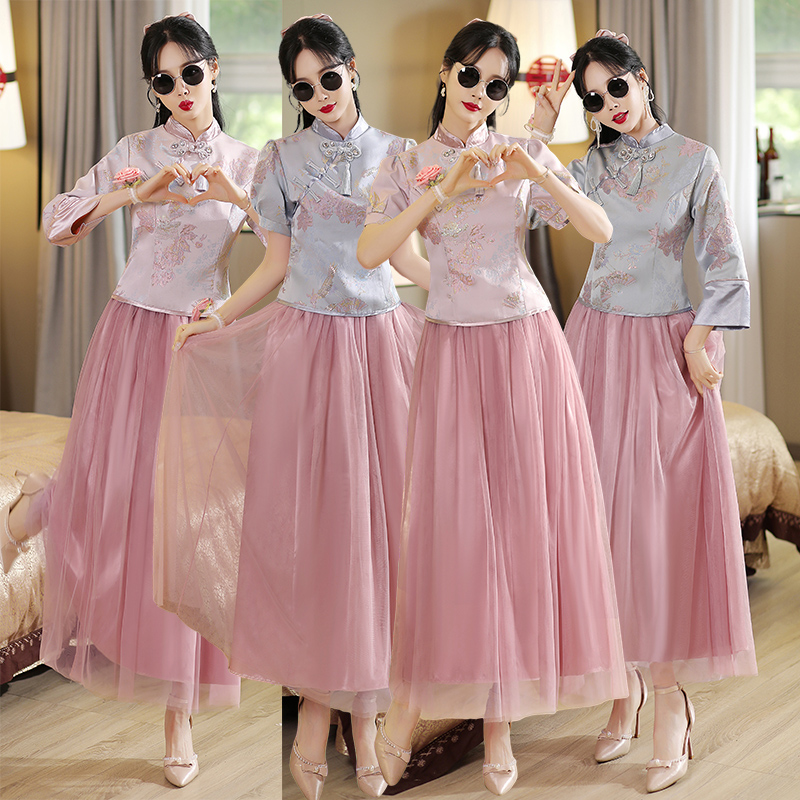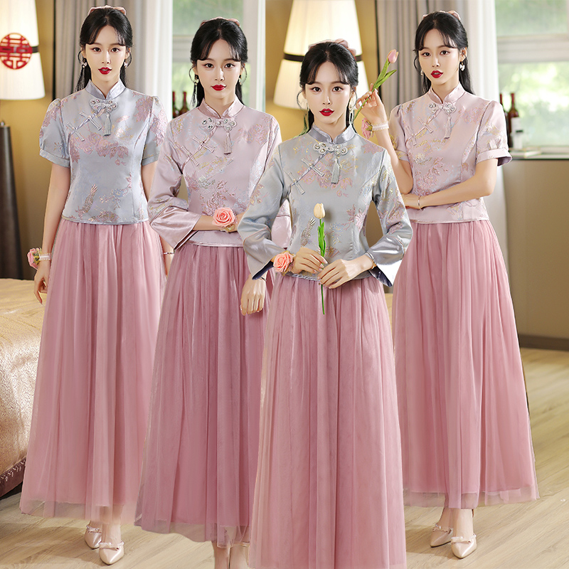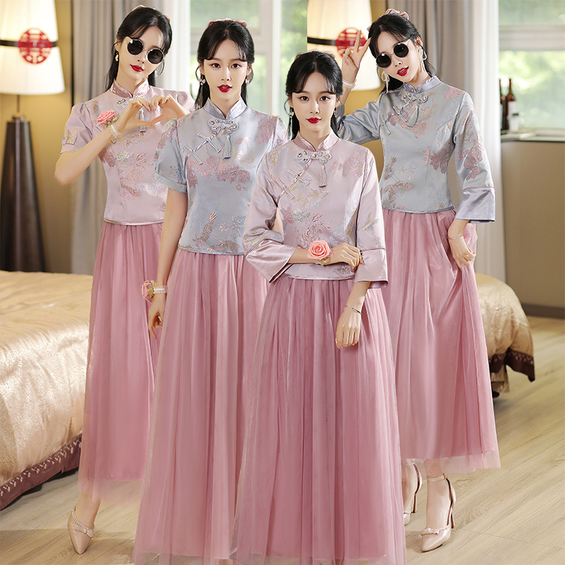 Платье подружки невесты, ретро традиционный свадебный наряд Сюхэ, китайский стиль, изысканный стиль, для подружки невесты, по фигуре