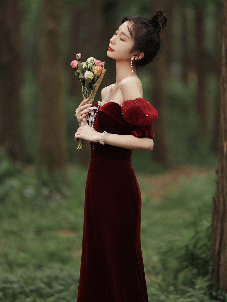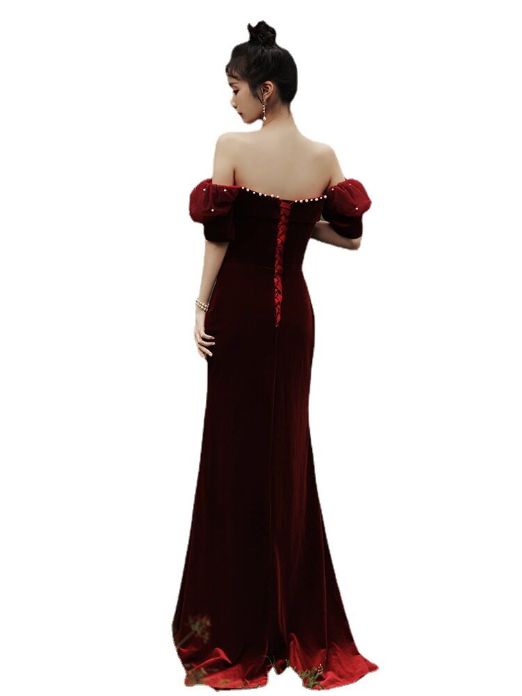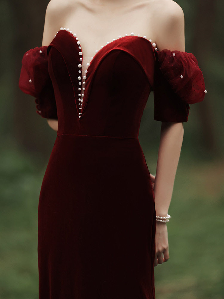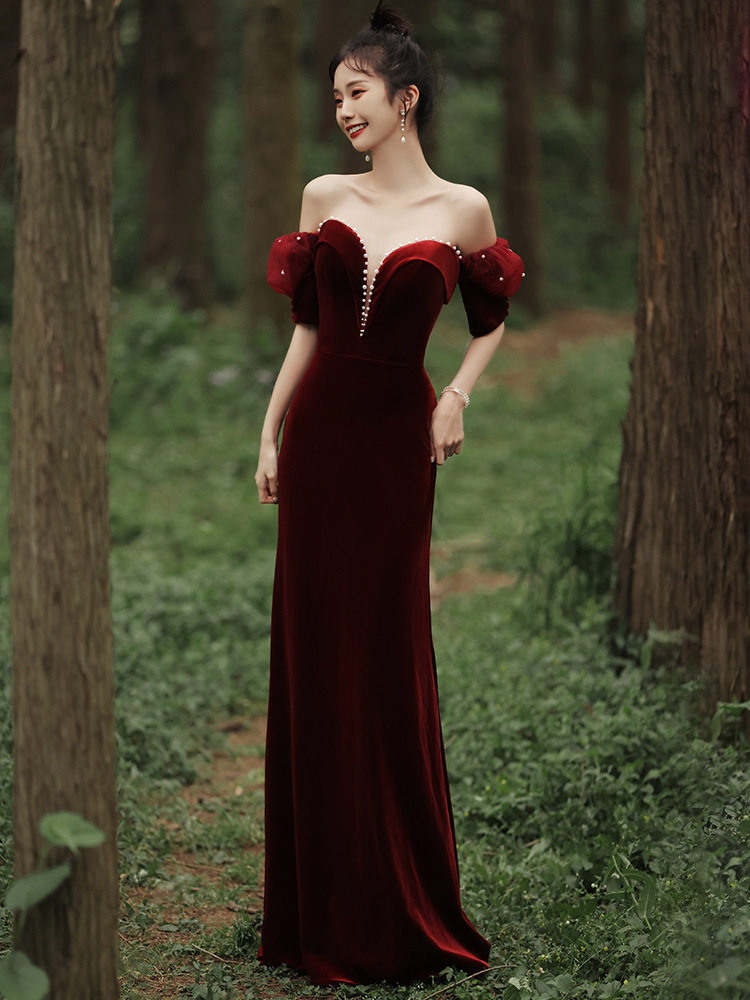 Летнее бархатное красное вечернее платье, крой «рыбий хвост»