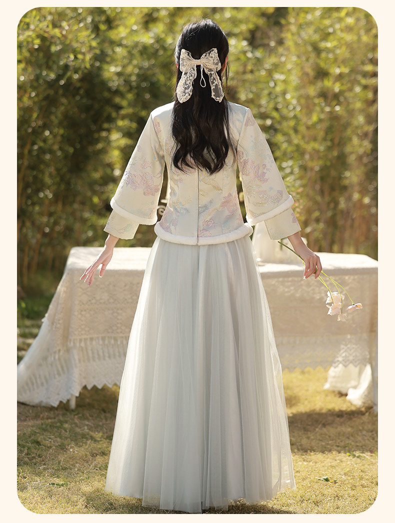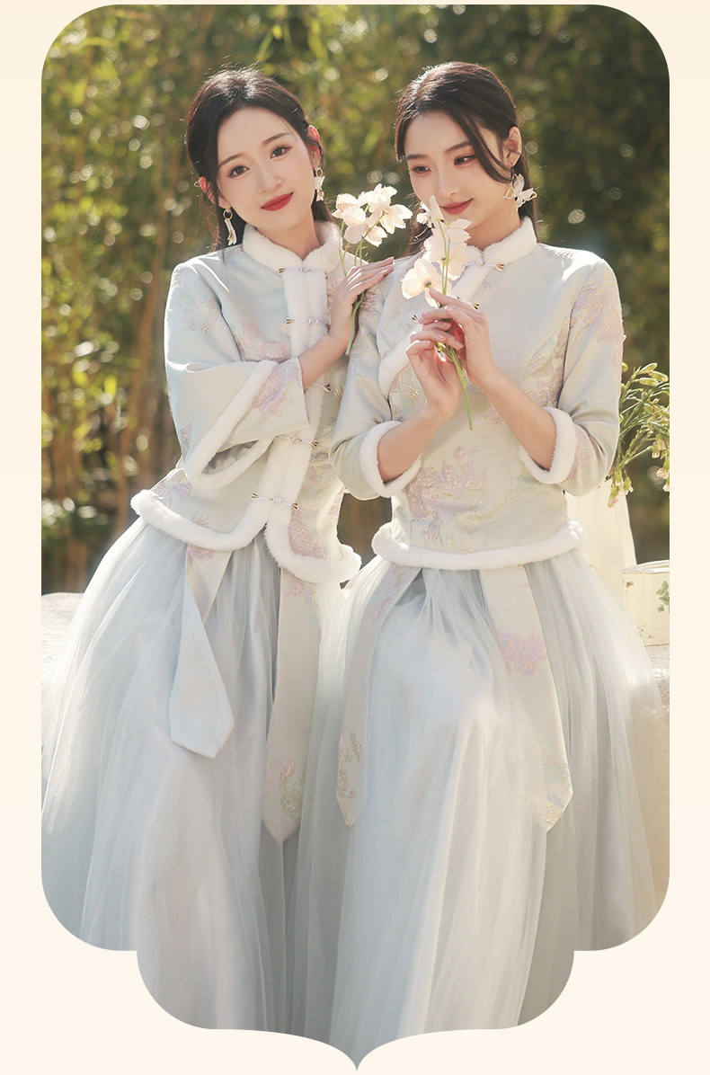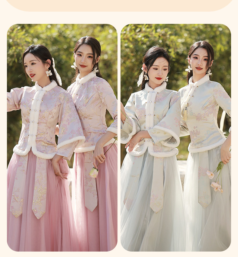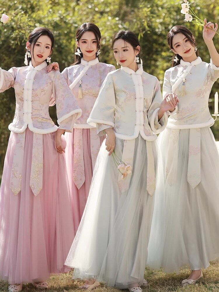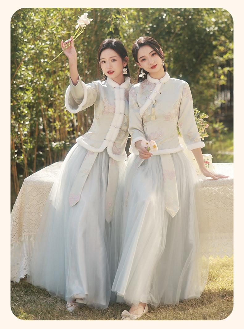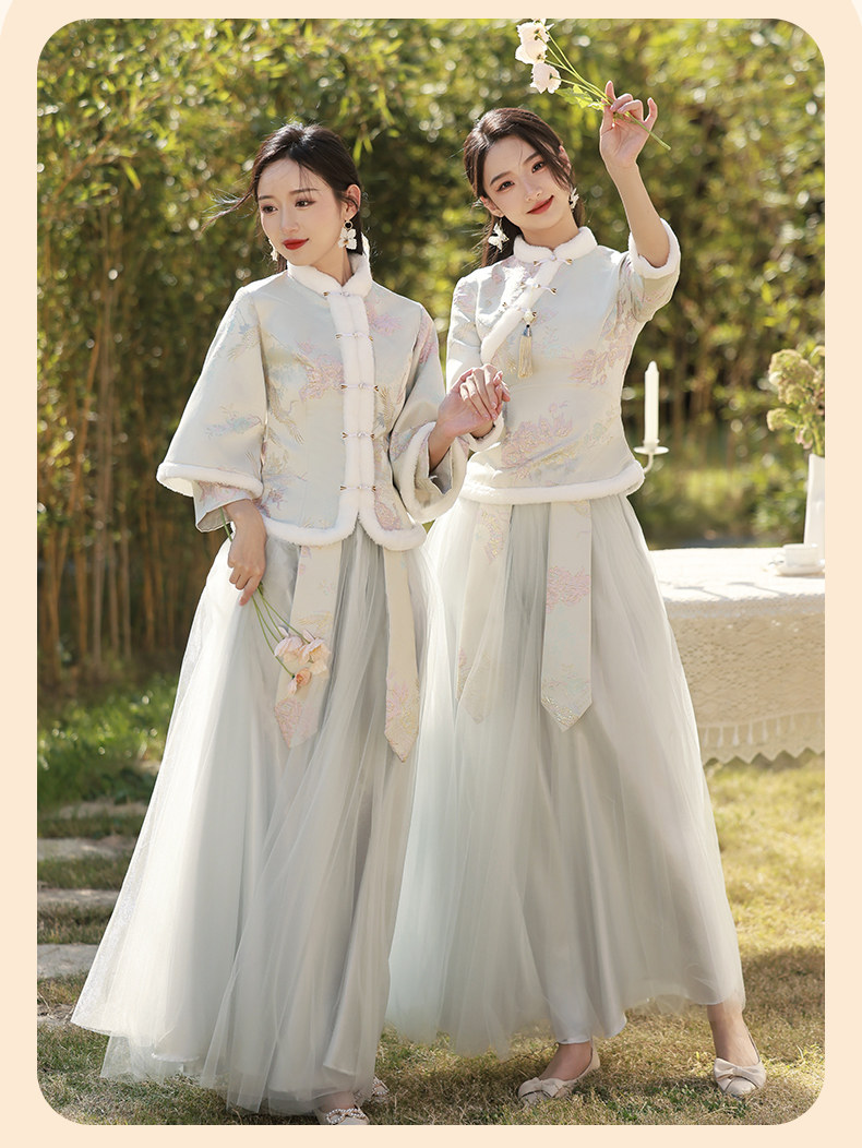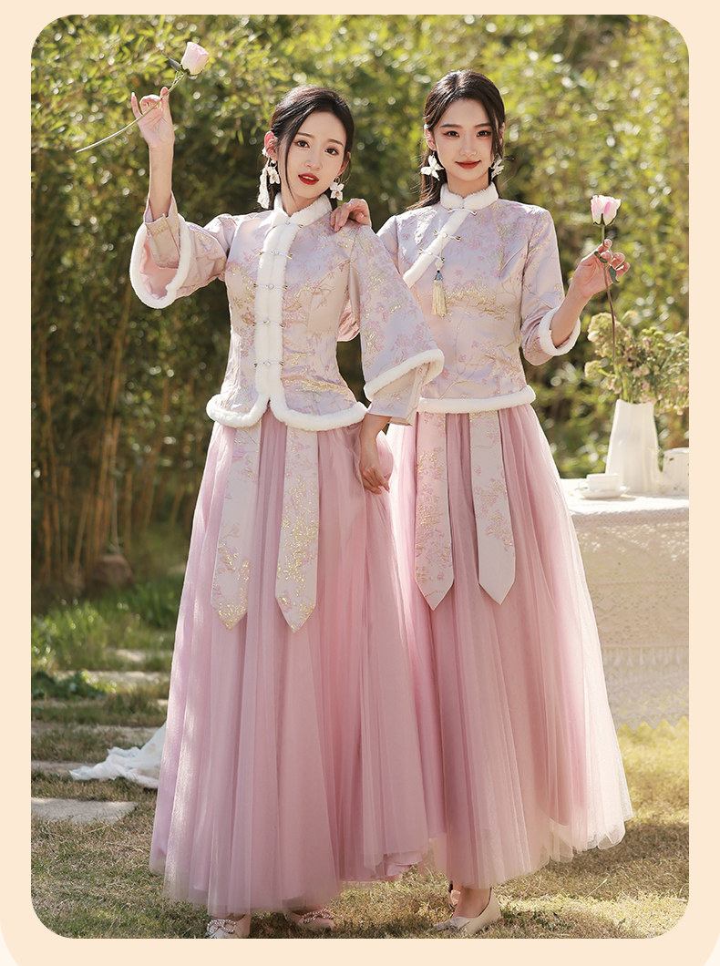 Зимнее платье подружки невесты, юбка, китайский стиль, увеличенная толщина, облегающий крой