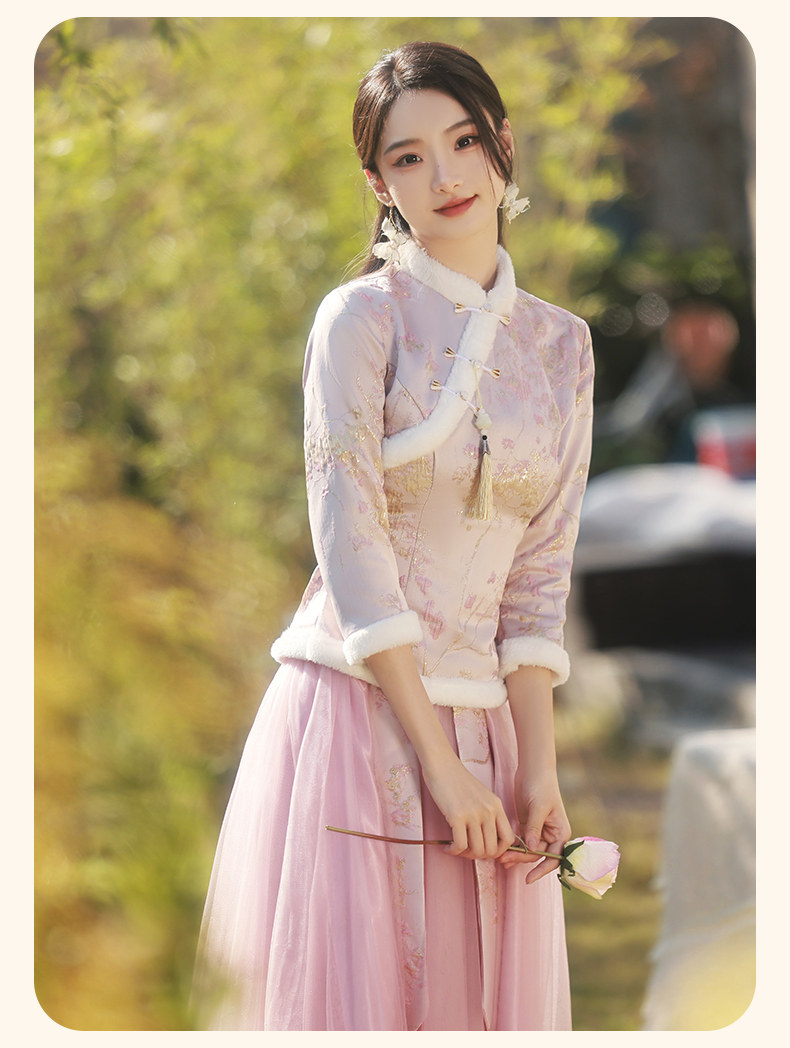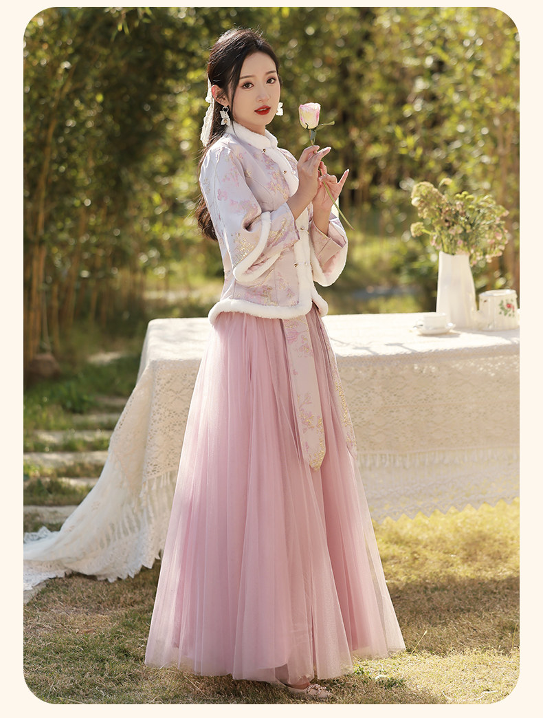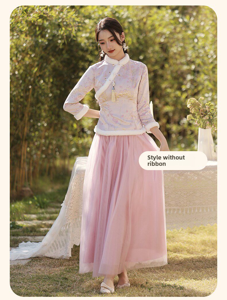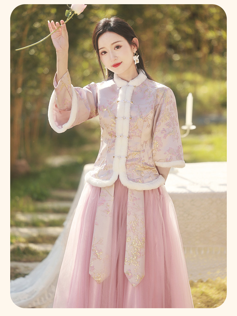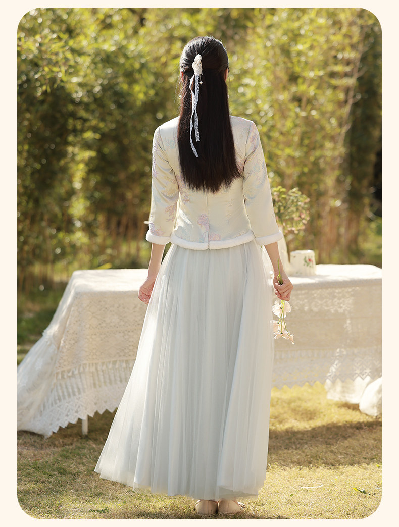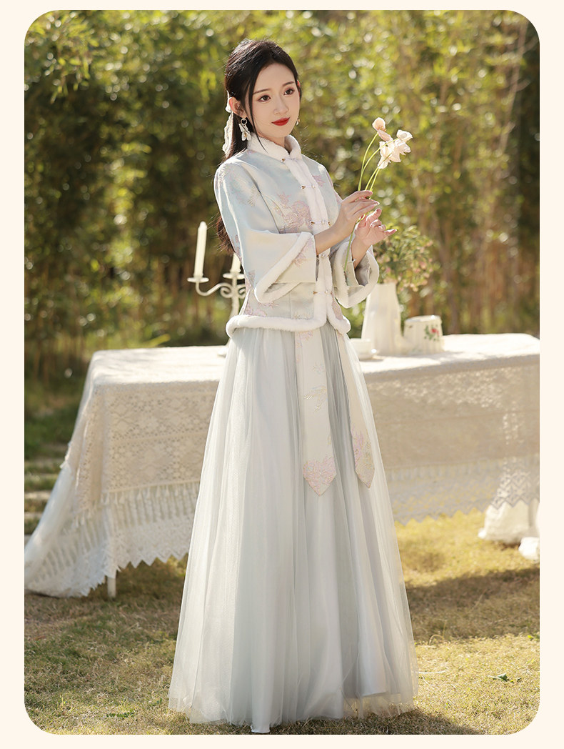 Зимнее платье подружки невесты, юбка, китайский стиль, увеличенная толщина, облегающий крой
