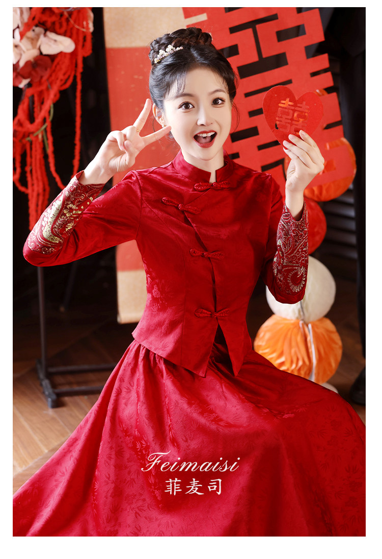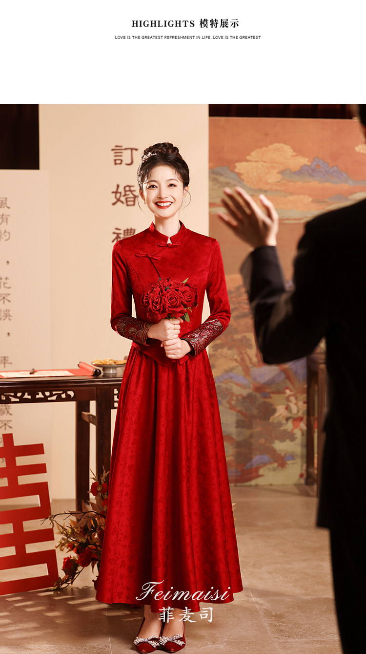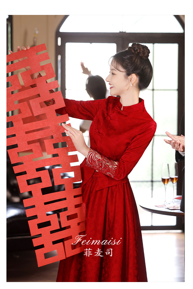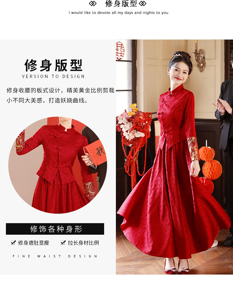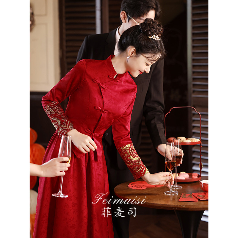 Вечернее платье, бордовое свадебное платье, традиционный свадебный наряд Сюхэ, комплект, ципао, китайский стиль