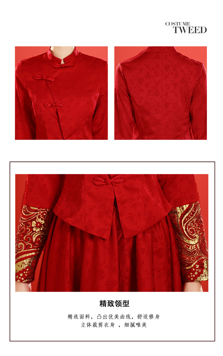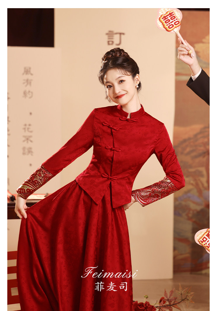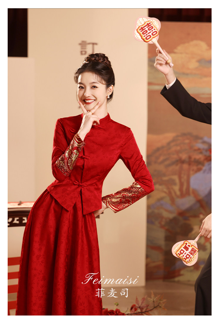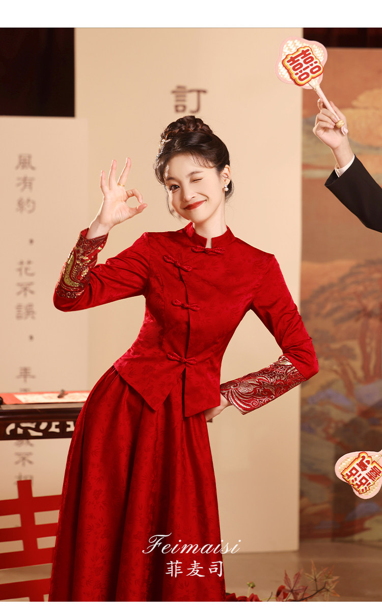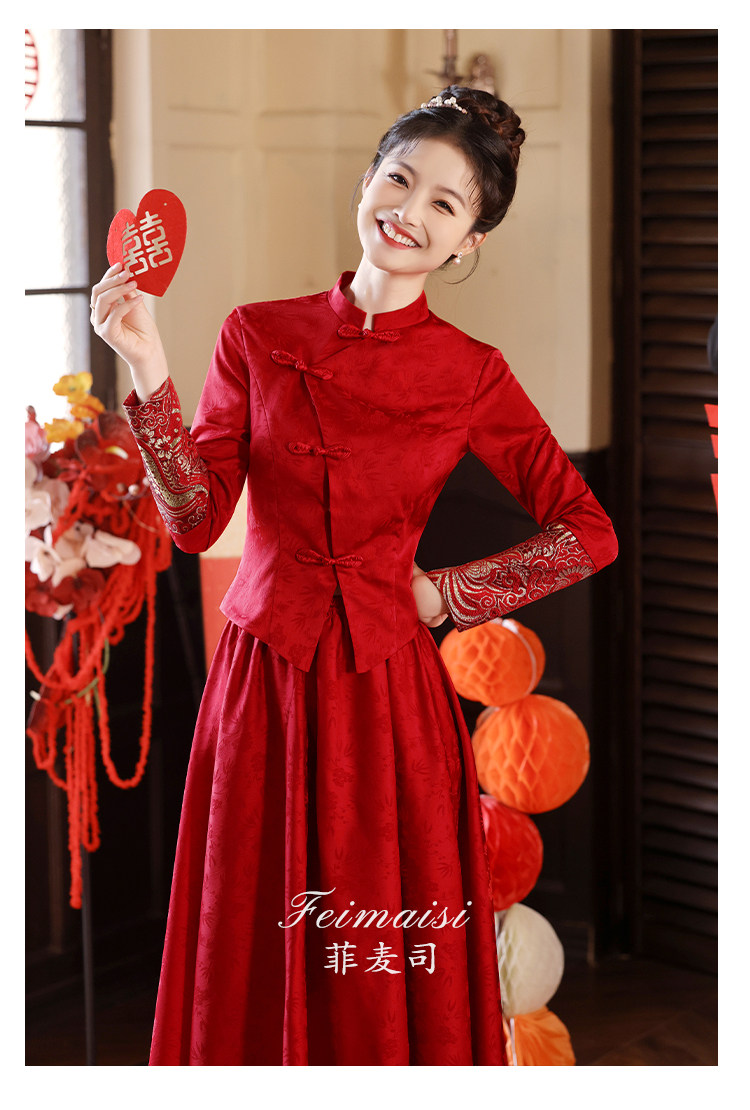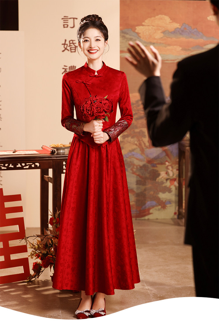 Вечернее платье, бордовое свадебное платье, традиционный свадебный наряд Сюхэ, комплект, ципао, китайский стиль