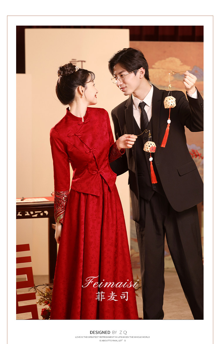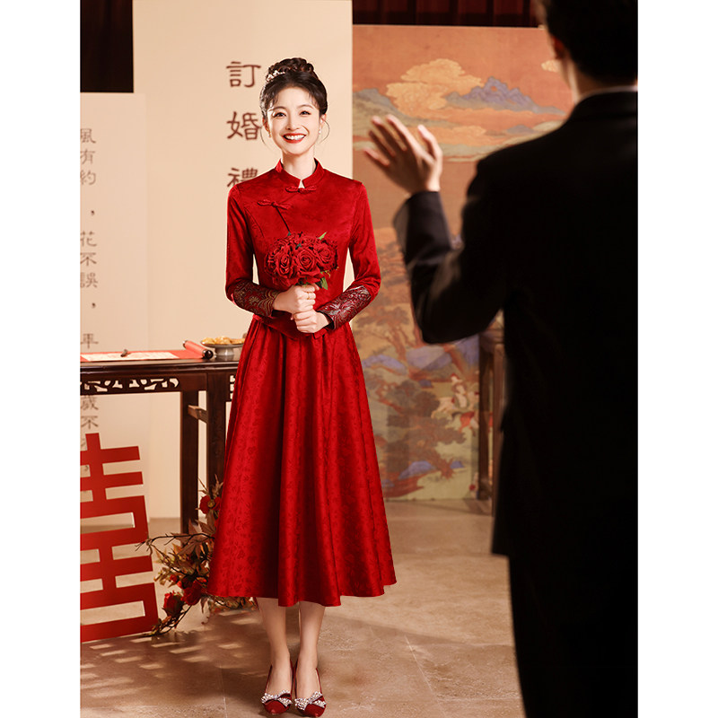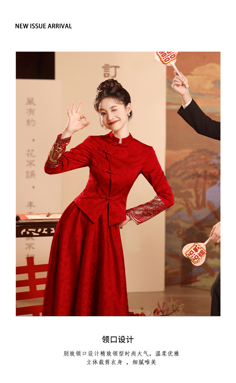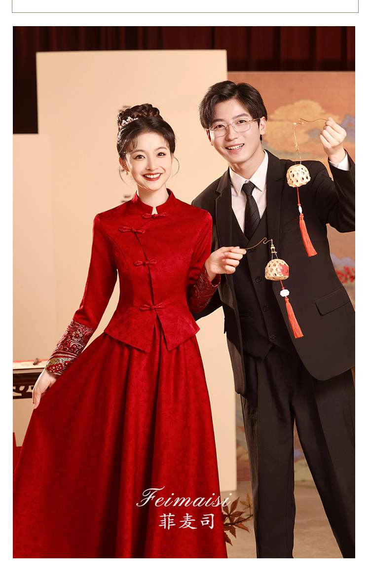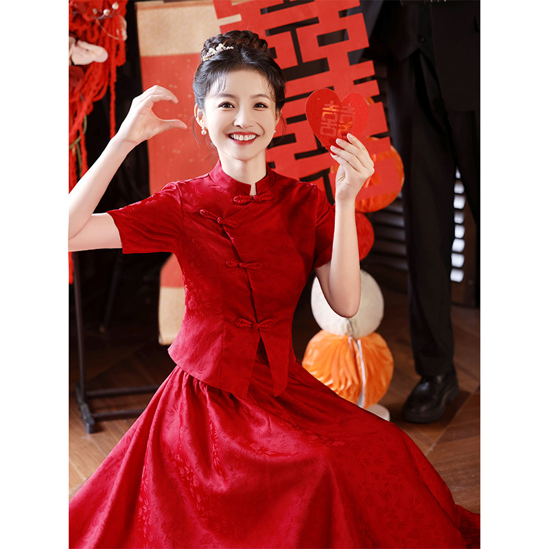 Вечернее платье, бордовое свадебное платье, традиционный свадебный наряд Сюхэ, комплект, ципао, китайский стиль