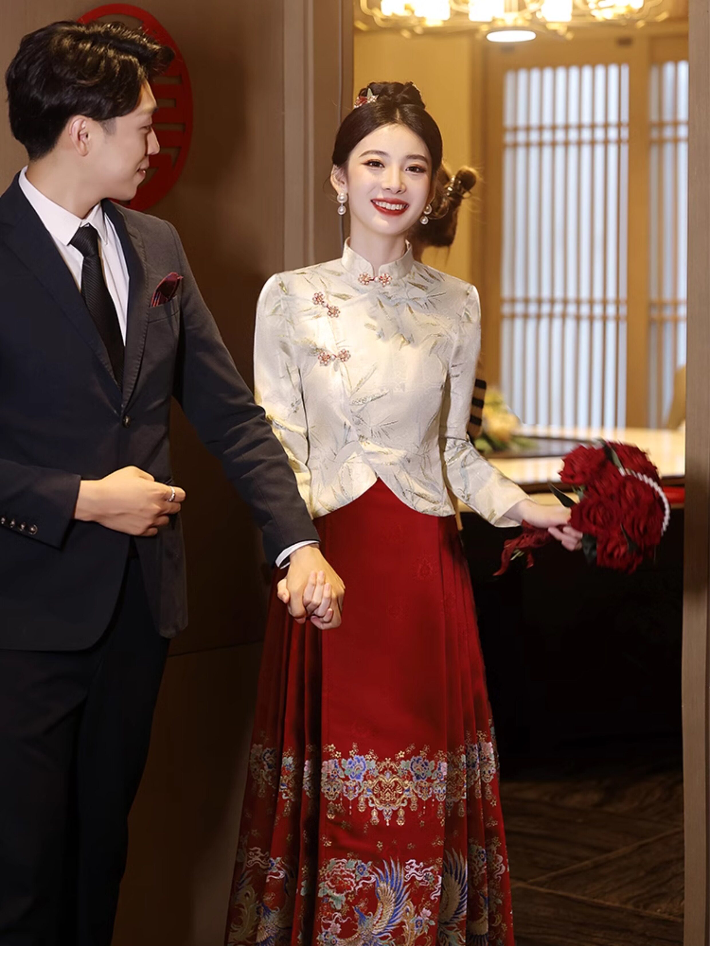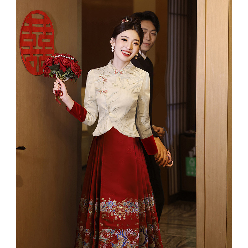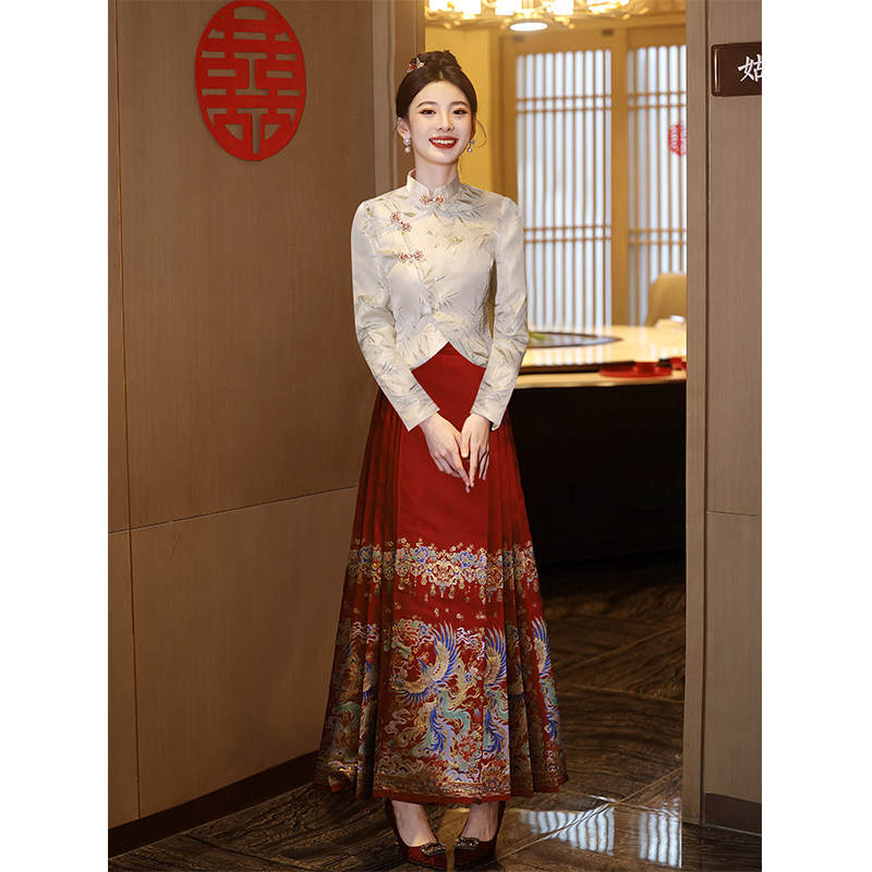 Феникс, вечернее платье, комплект для невесты, ципао, свадебное платье