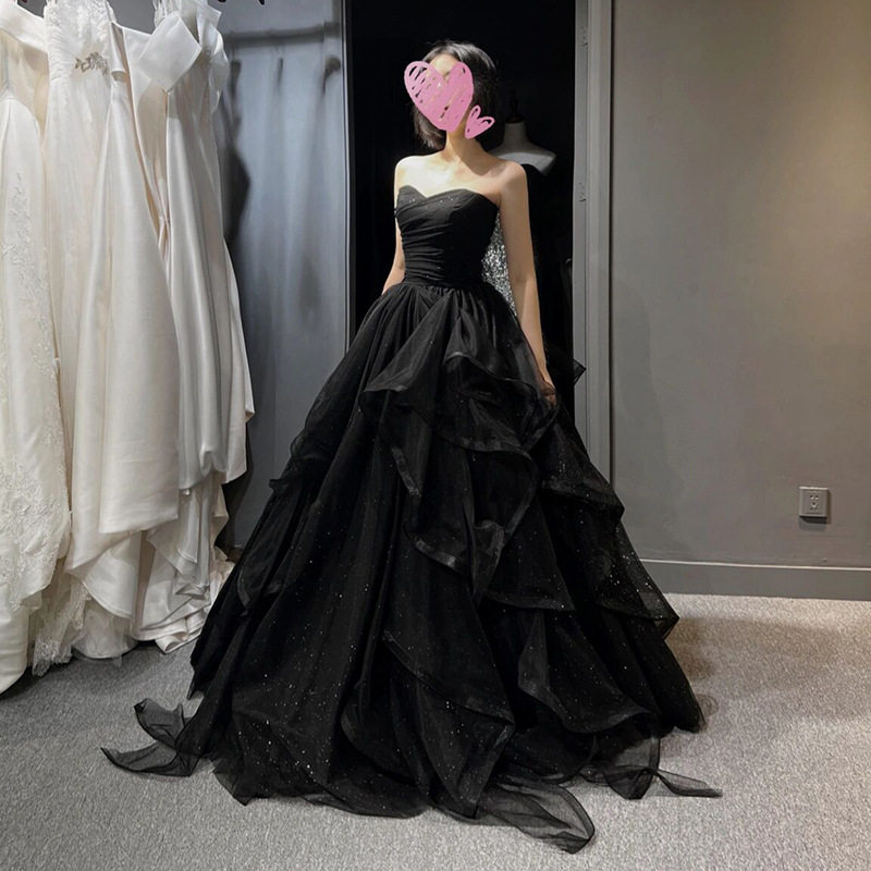 Черный топ без лямок, элитное вечернее платье, изысканный стиль, юбка-пачка