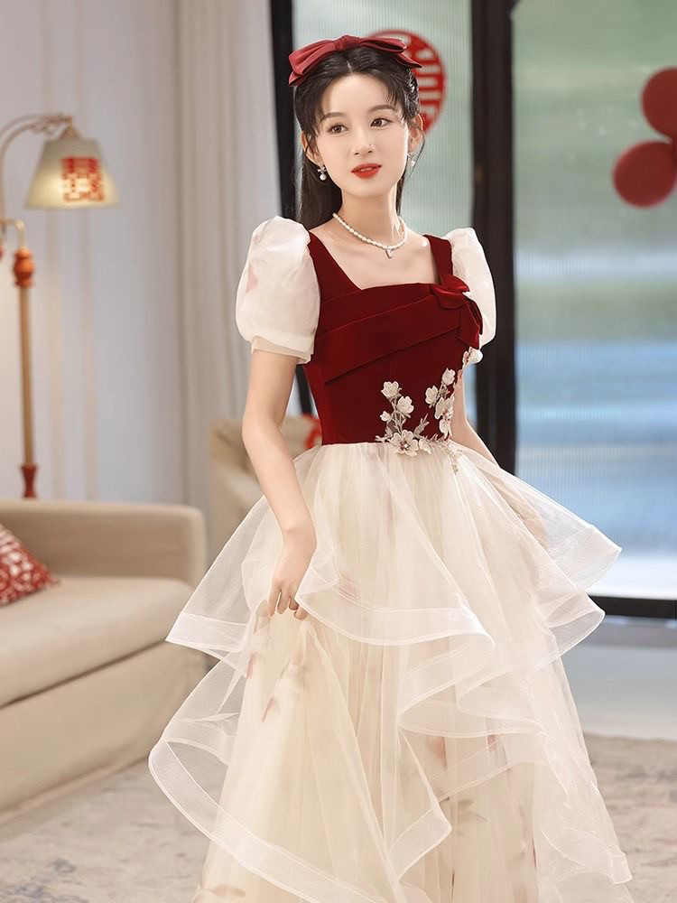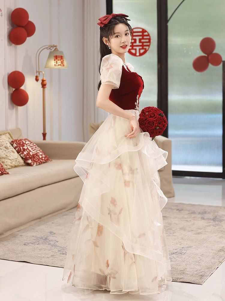 Бордовое вечернее платье, юбка, китайский стиль
