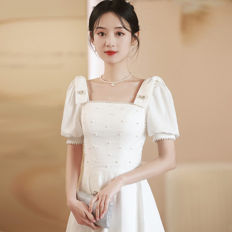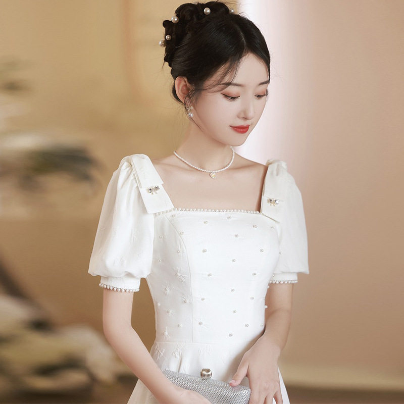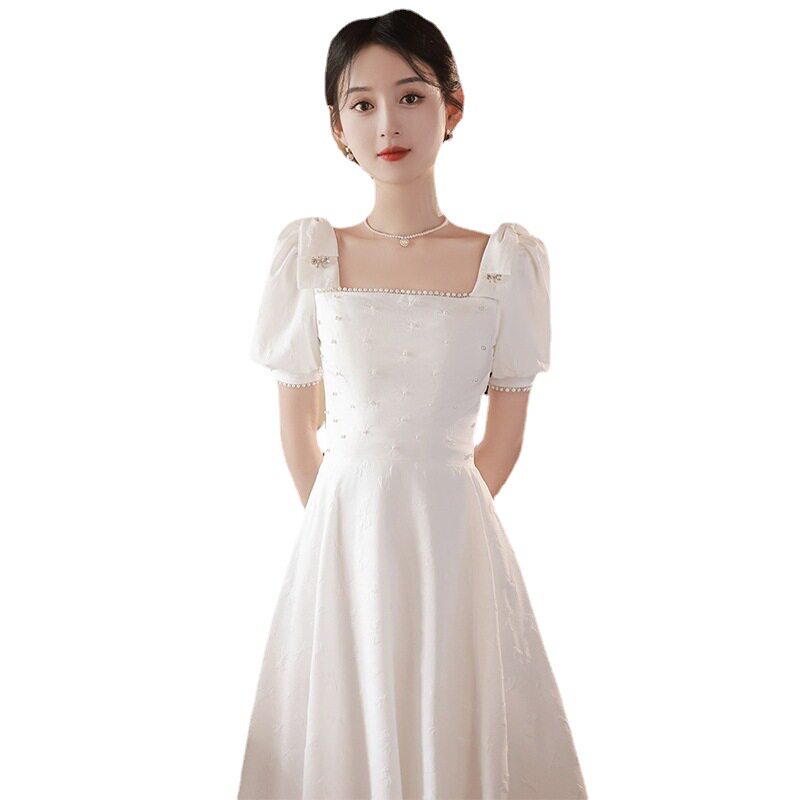 Белое элитное вечернее платье, 2024 года, квадратный вырез