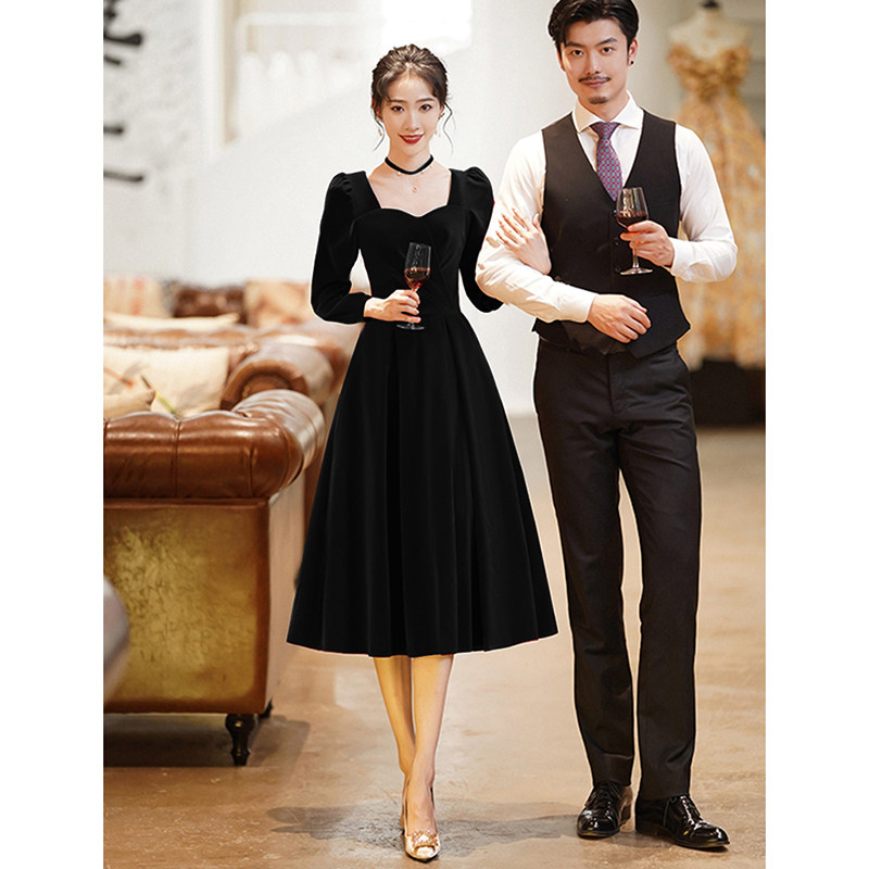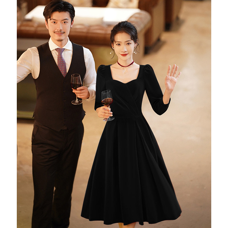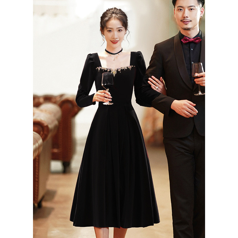 Черное бархатное вечернее платье, изысканный стиль