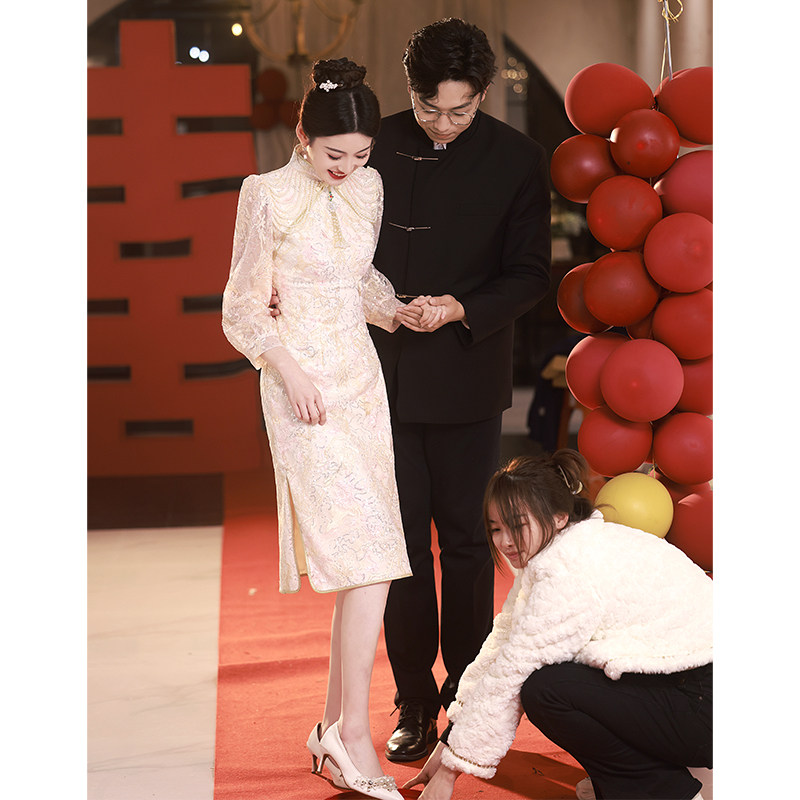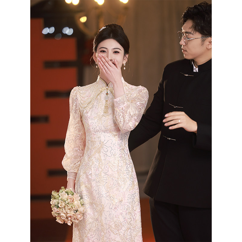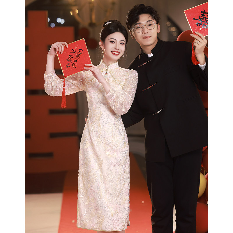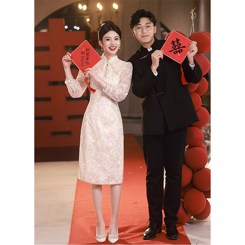 Ципао, свадебное платье, розовое вечернее платье, китайский стиль, подходит для подростков