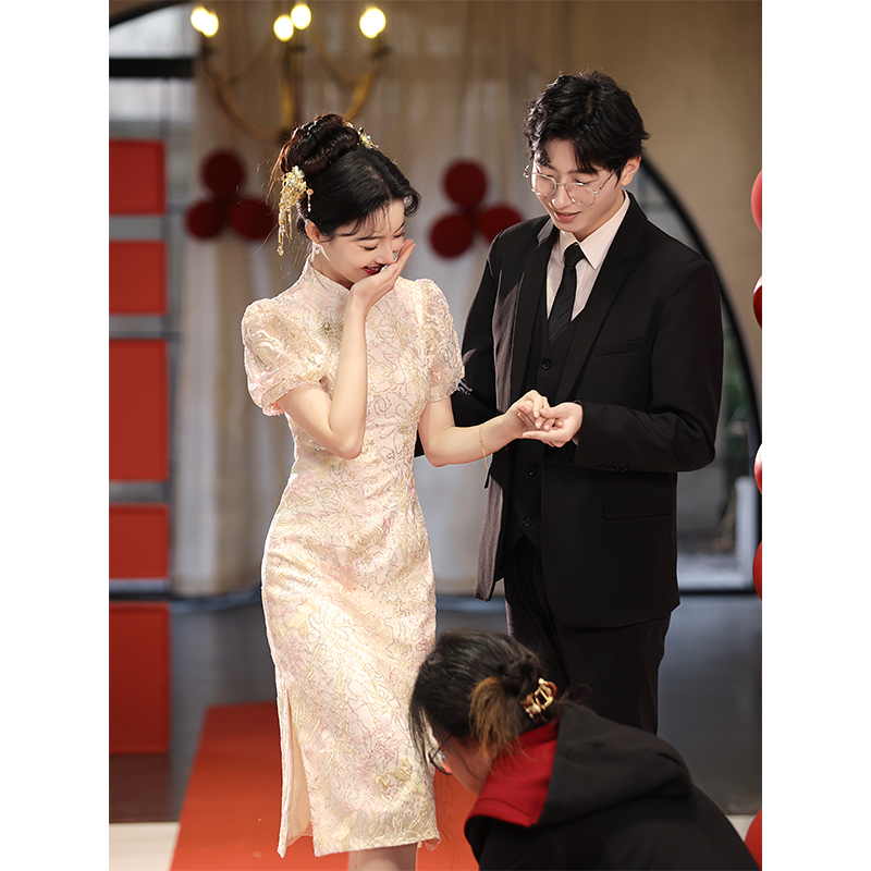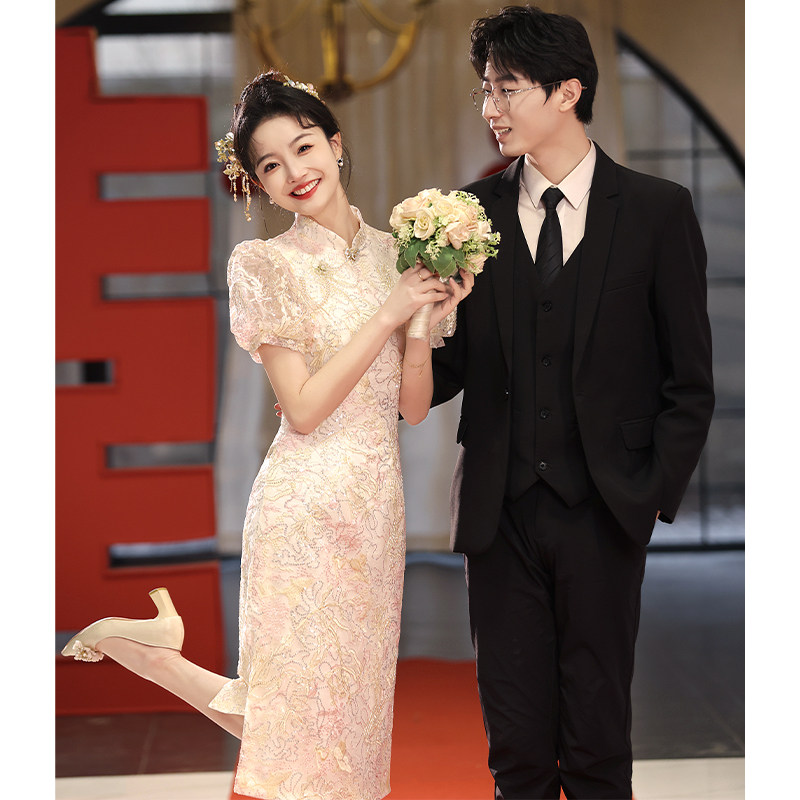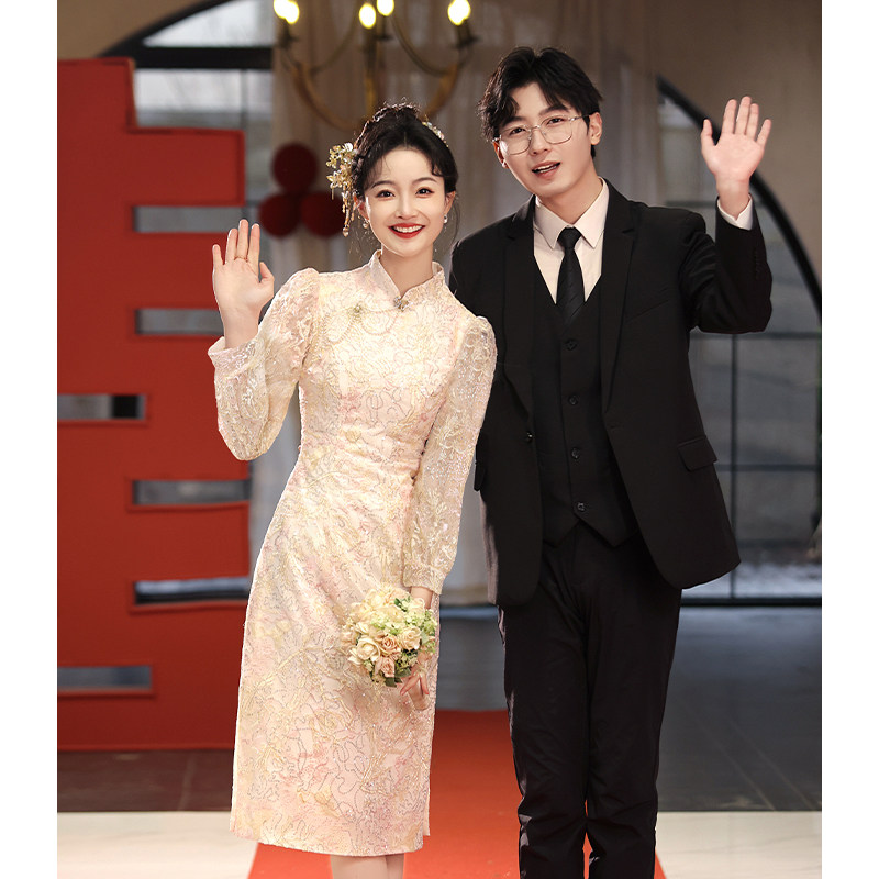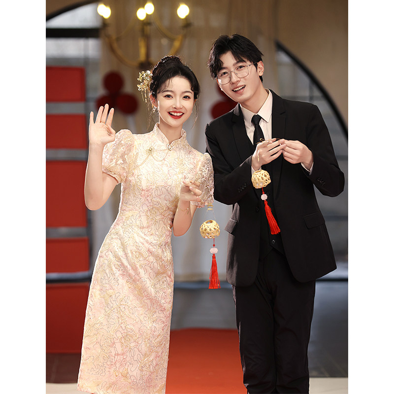 Ципао, свадебное платье, розовое вечернее платье, юбка, китайский стиль