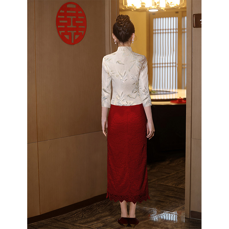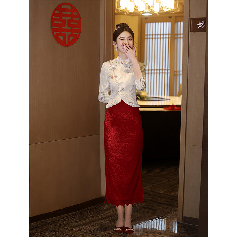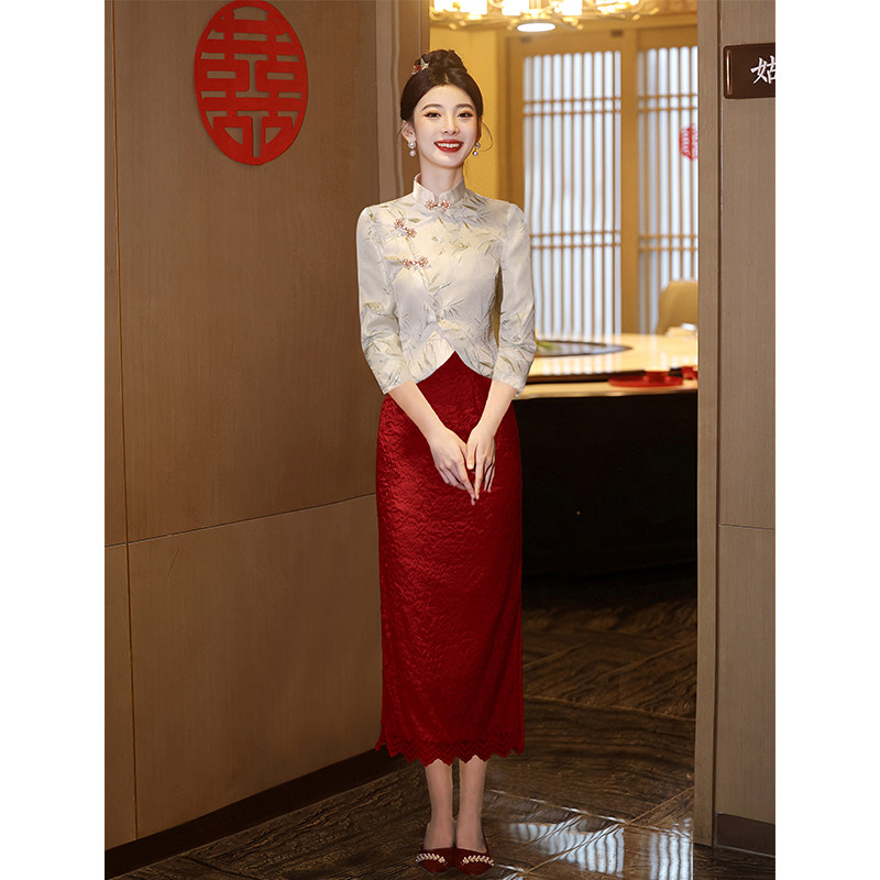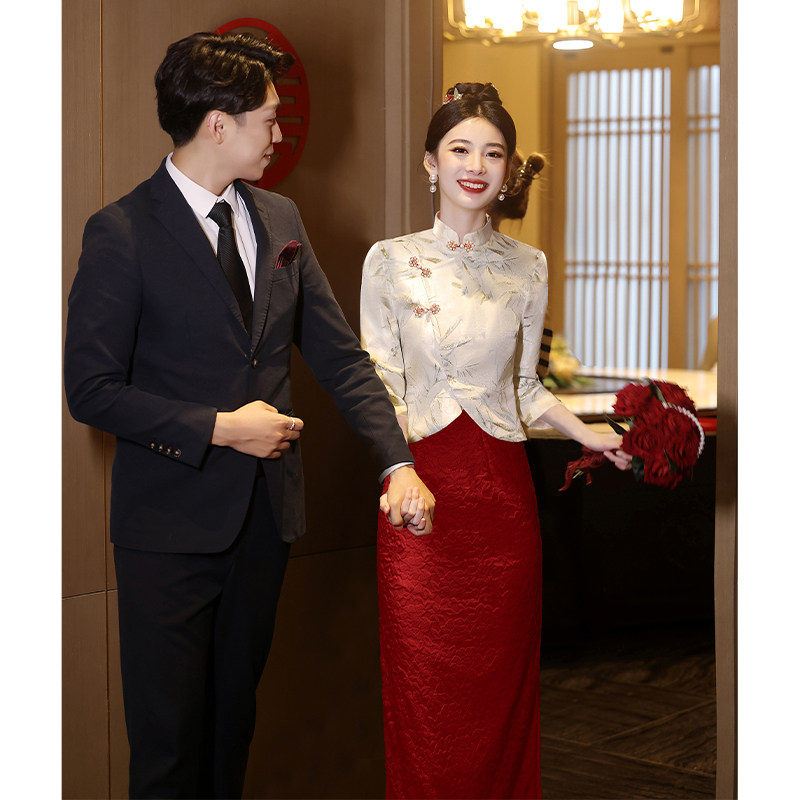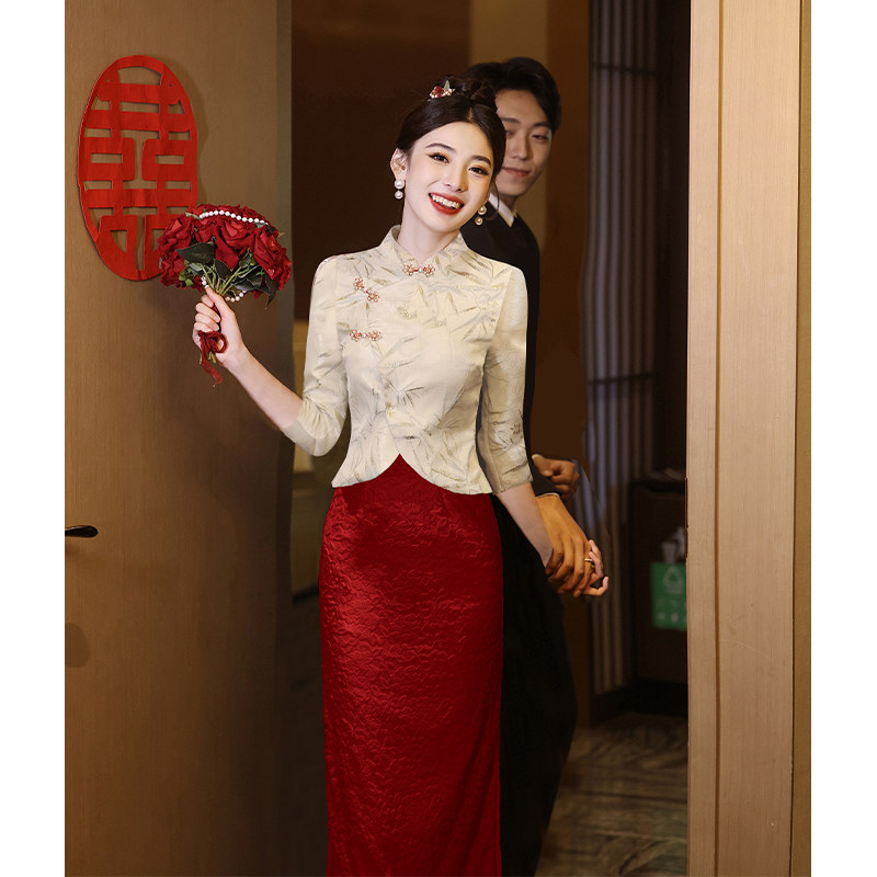 Свадебное платье, вечернее коктейльное платье, комплект, ципао, китайский стиль, цвета шампанского