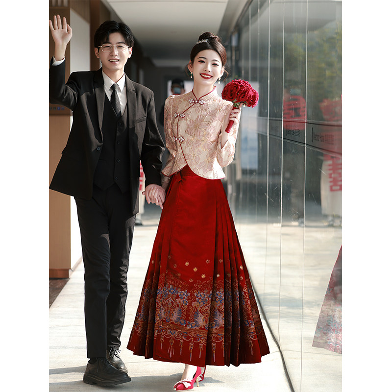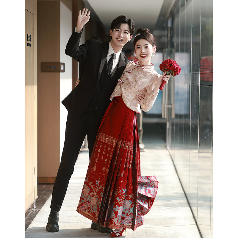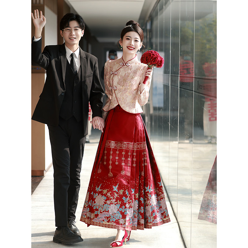 Комплект, розовое вечернее платье, ципао для невесты, свадебное платье