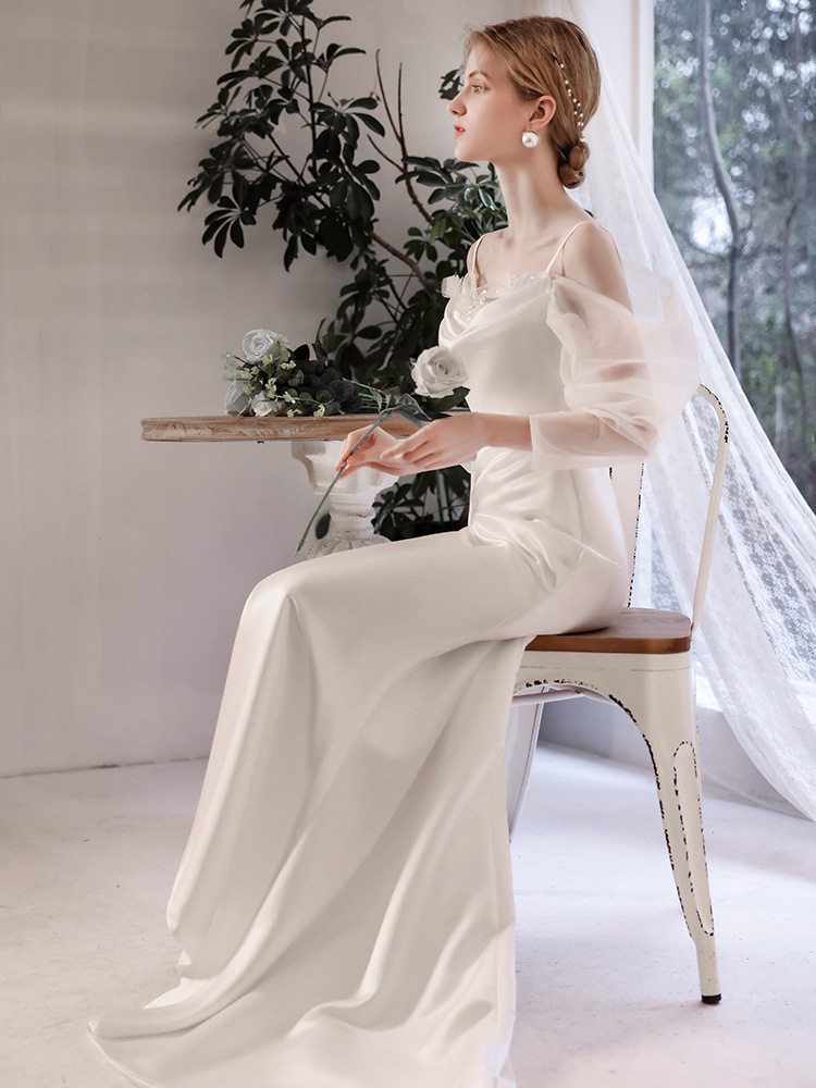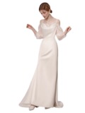 Белое вечернее платье, юбка, лонгслив, свадебное платье, крой «рыбий хвост», изысканный стиль, простой крой