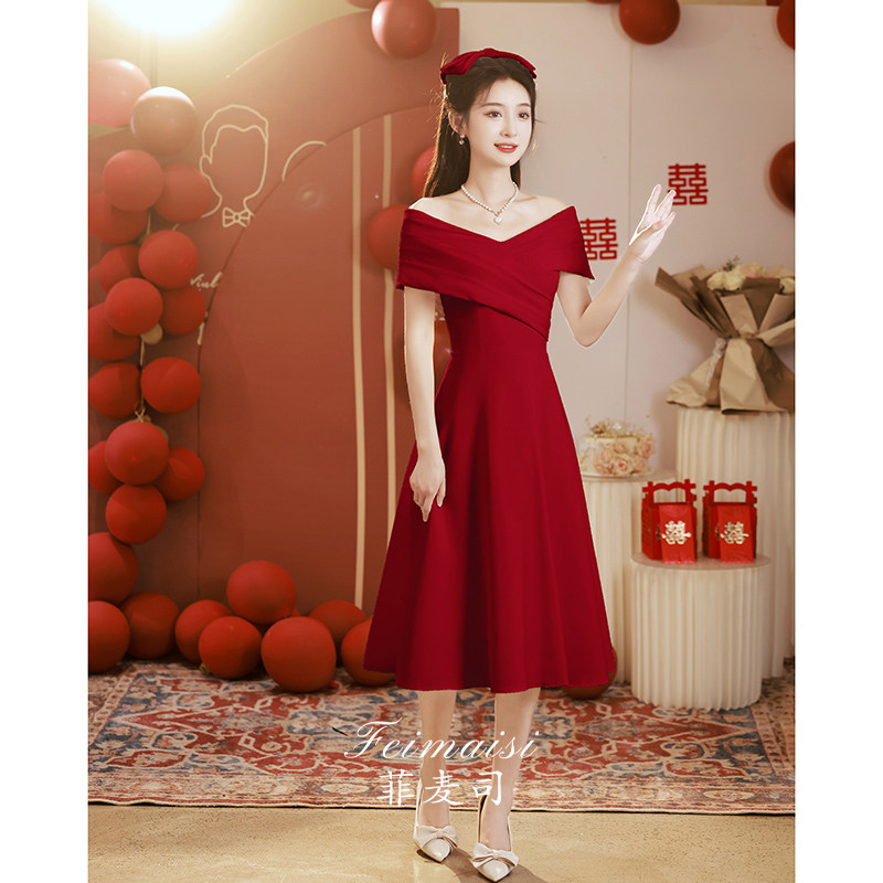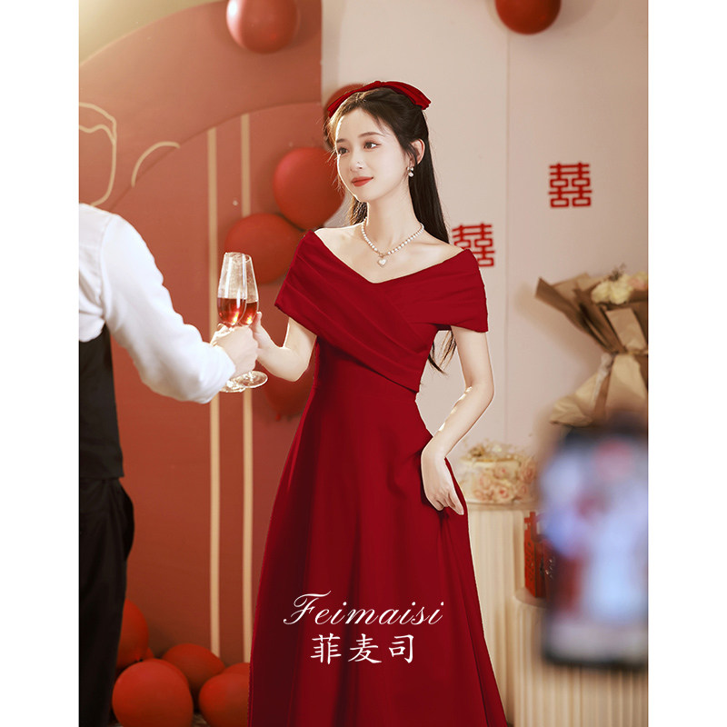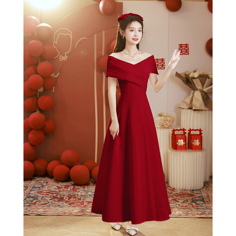 Бордовое вечернее платье, открытые плечи