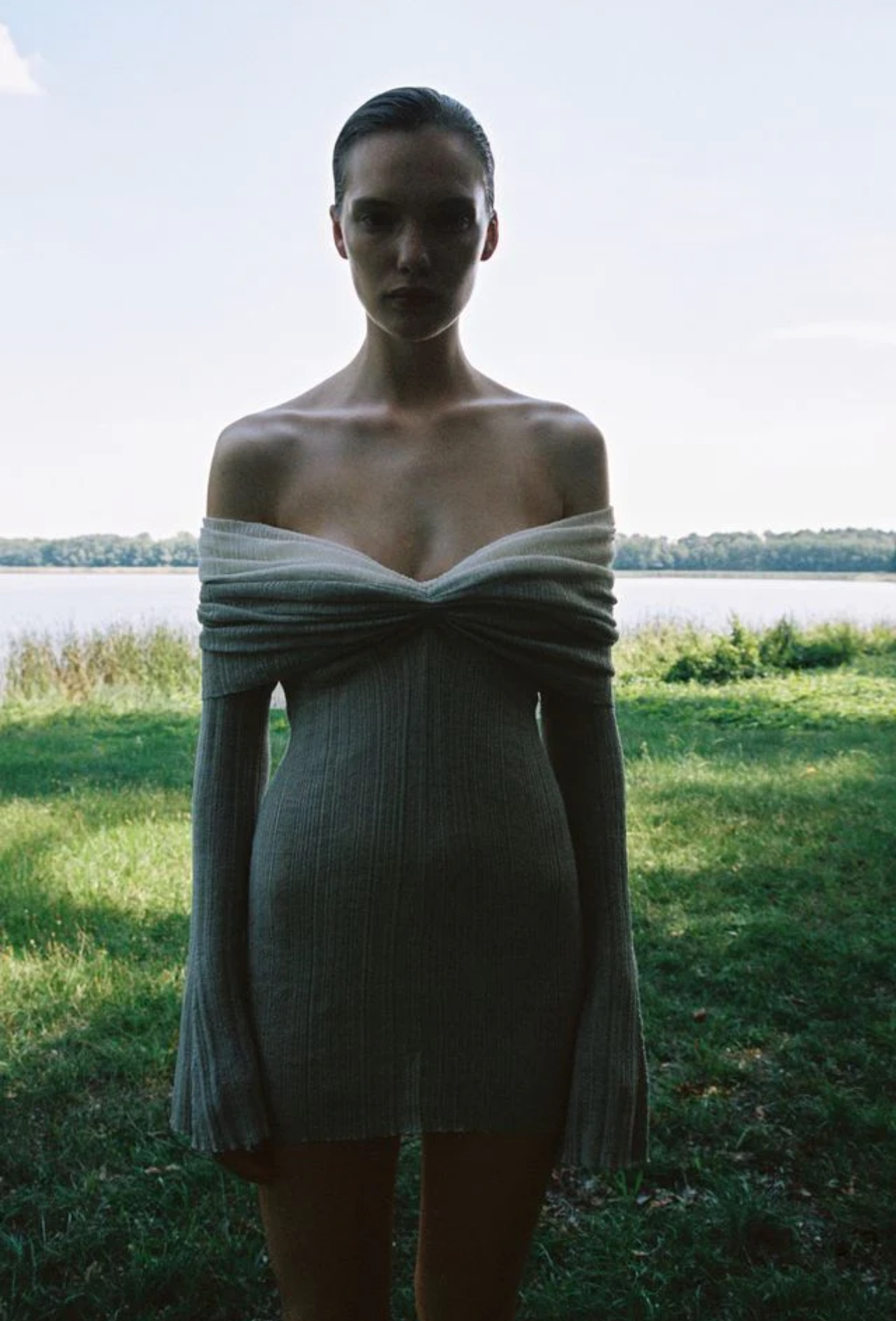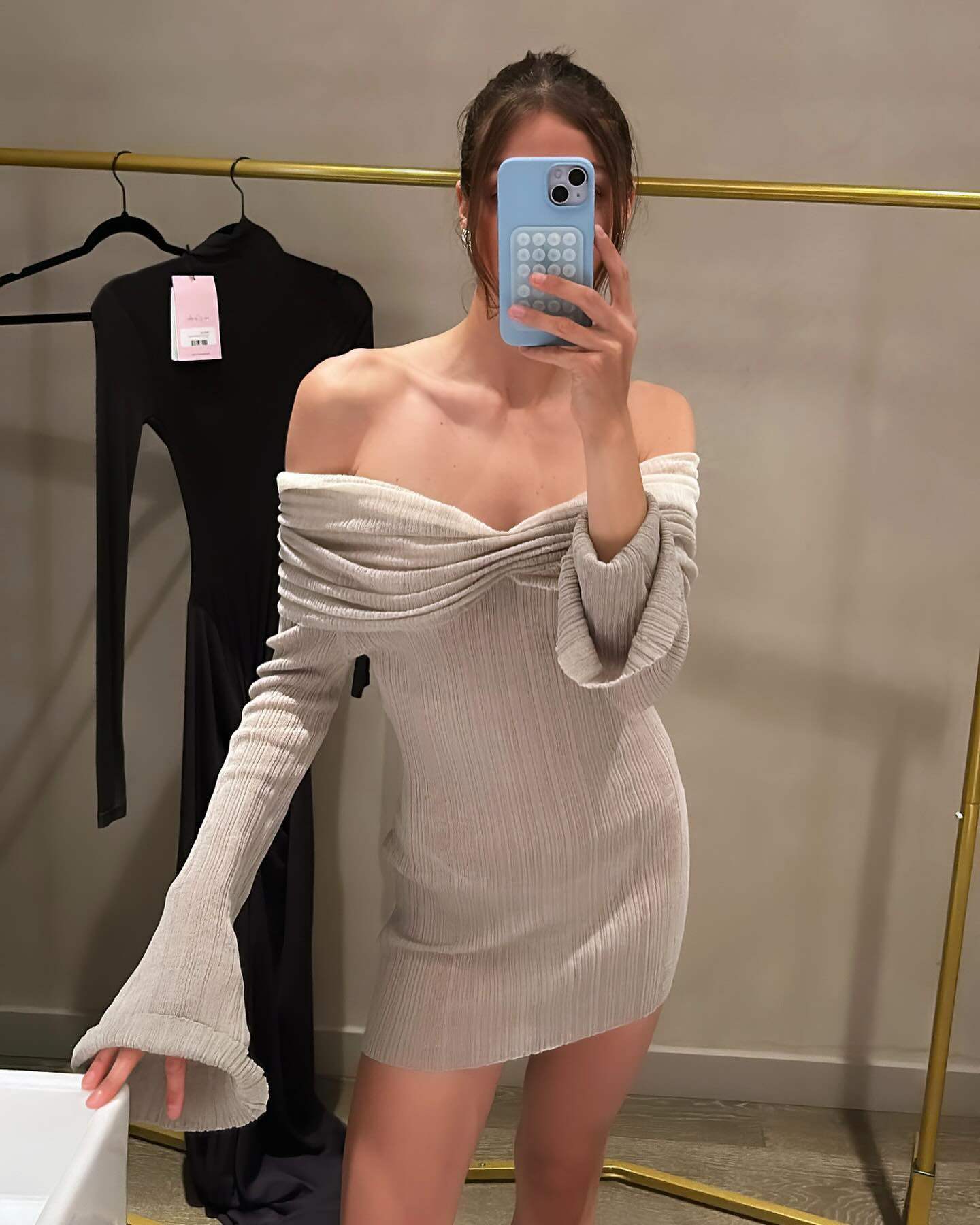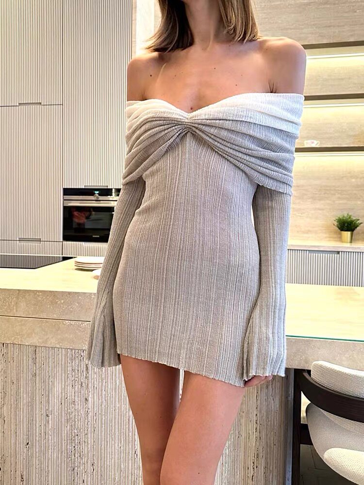 Трикотажное трикотажное платье, сексуальный приталенный корсет, мини-юбка, французский стиль, открытые плечи, яркий броский стиль, с акцентом на бедрах