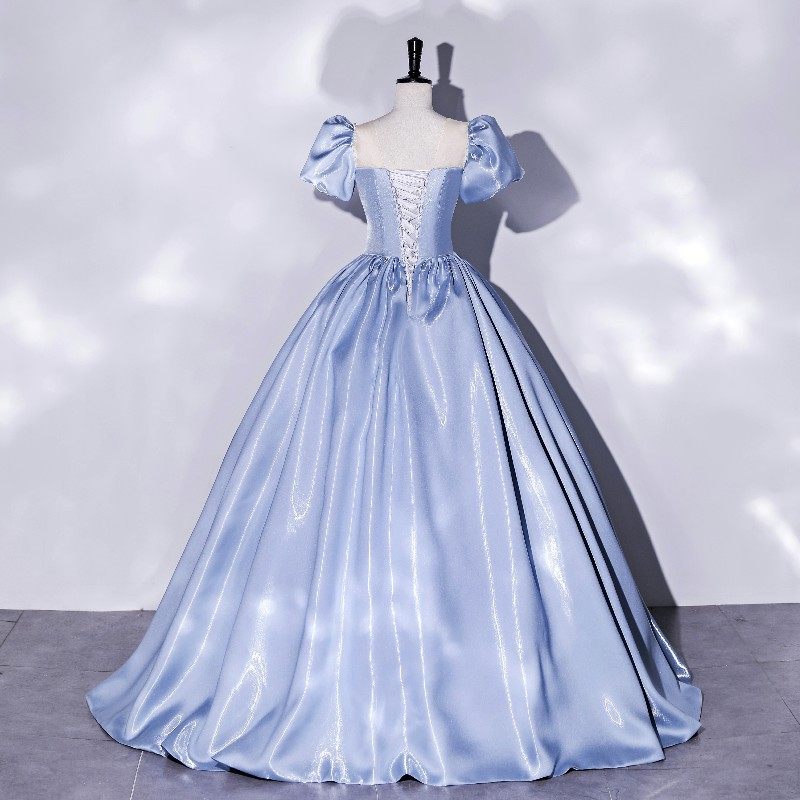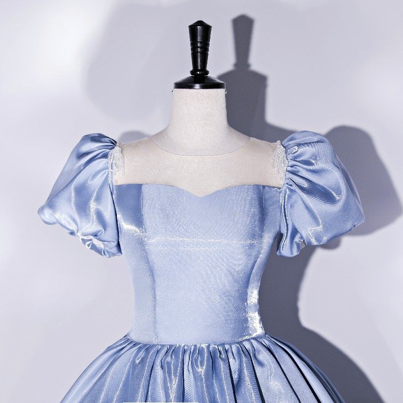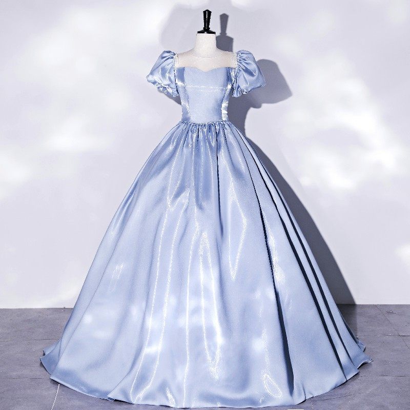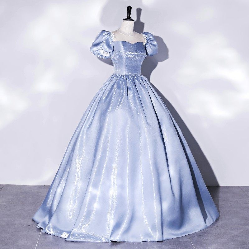 Новинка 2024 года, летний стиль, темперамент принцессы, небесно-голубой, с пышными рукавами, свадебный тест, красочная пряжа для соло-хозяина