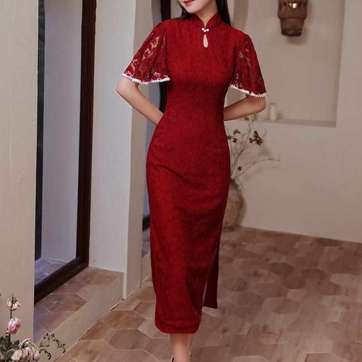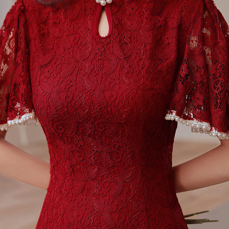Ципао, летнее бордовое вечернее платье, изысканный стиль
