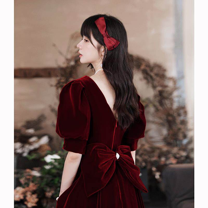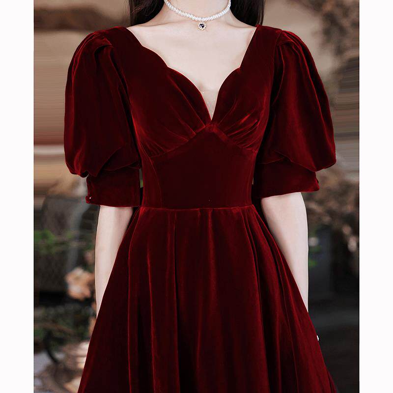 Бордовое зимнее вечернее платье для невесты для принцессы, подходит для подростков, изысканный стиль