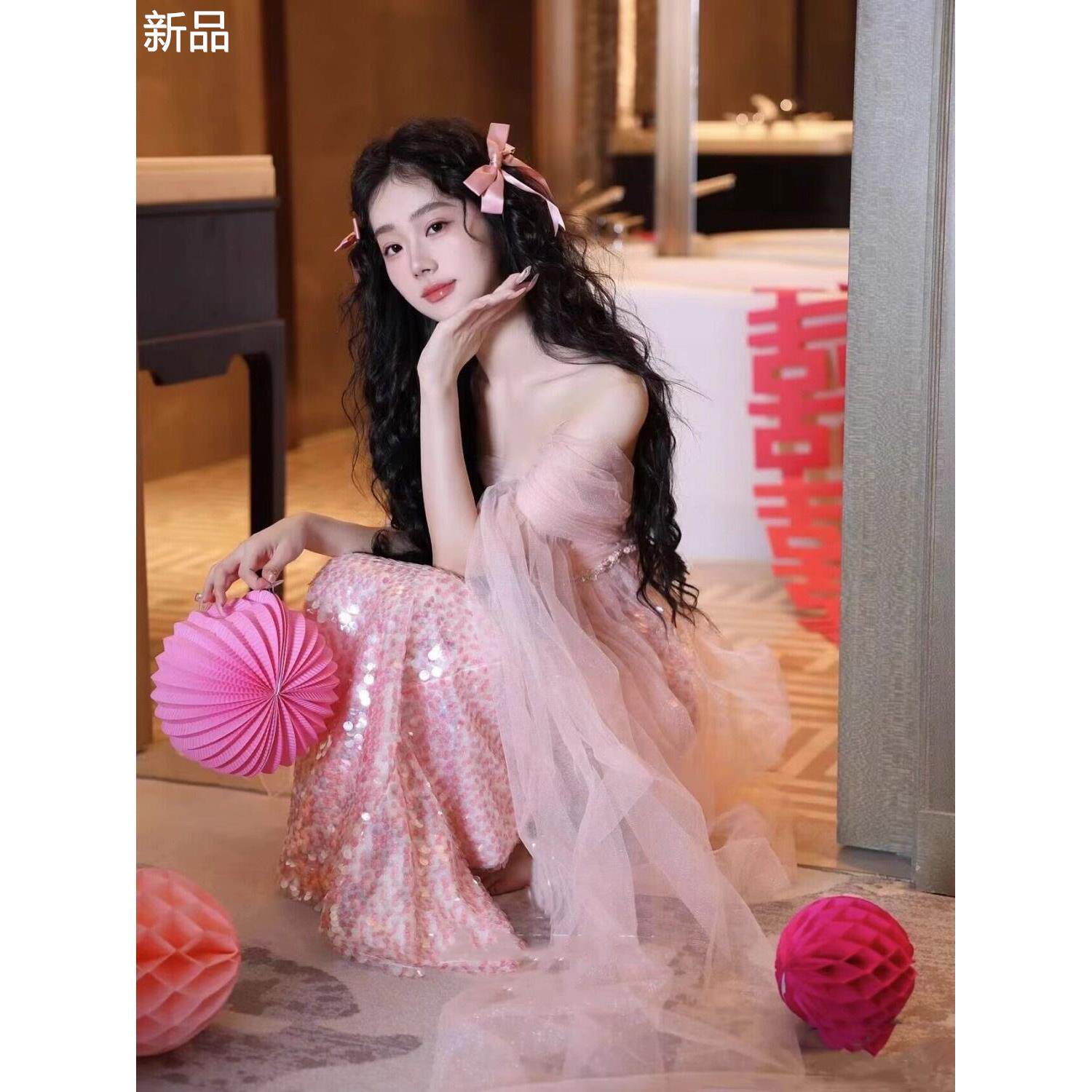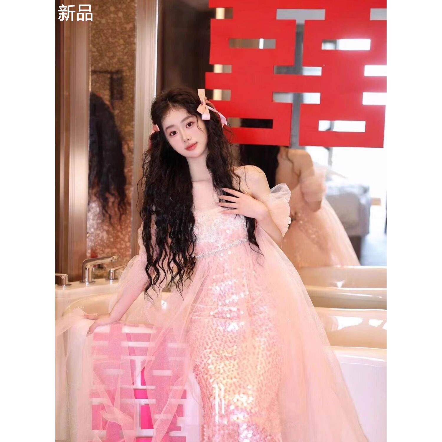 Розовое элитное свадебное платье, китайский стиль