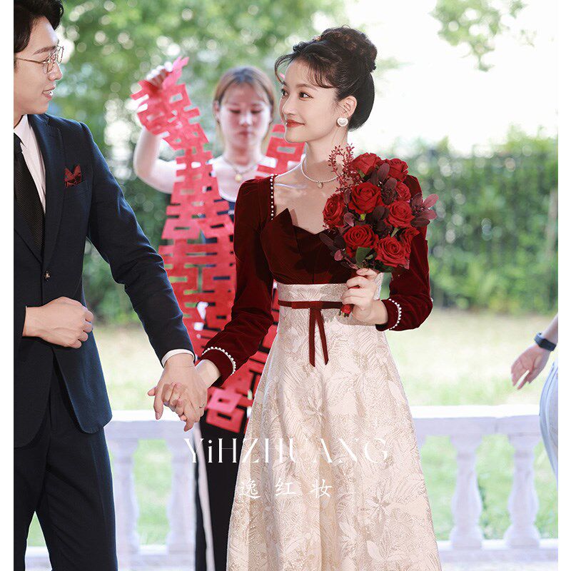 Бордовое свадебное платье, летнее вечернее платье, изысканный стиль