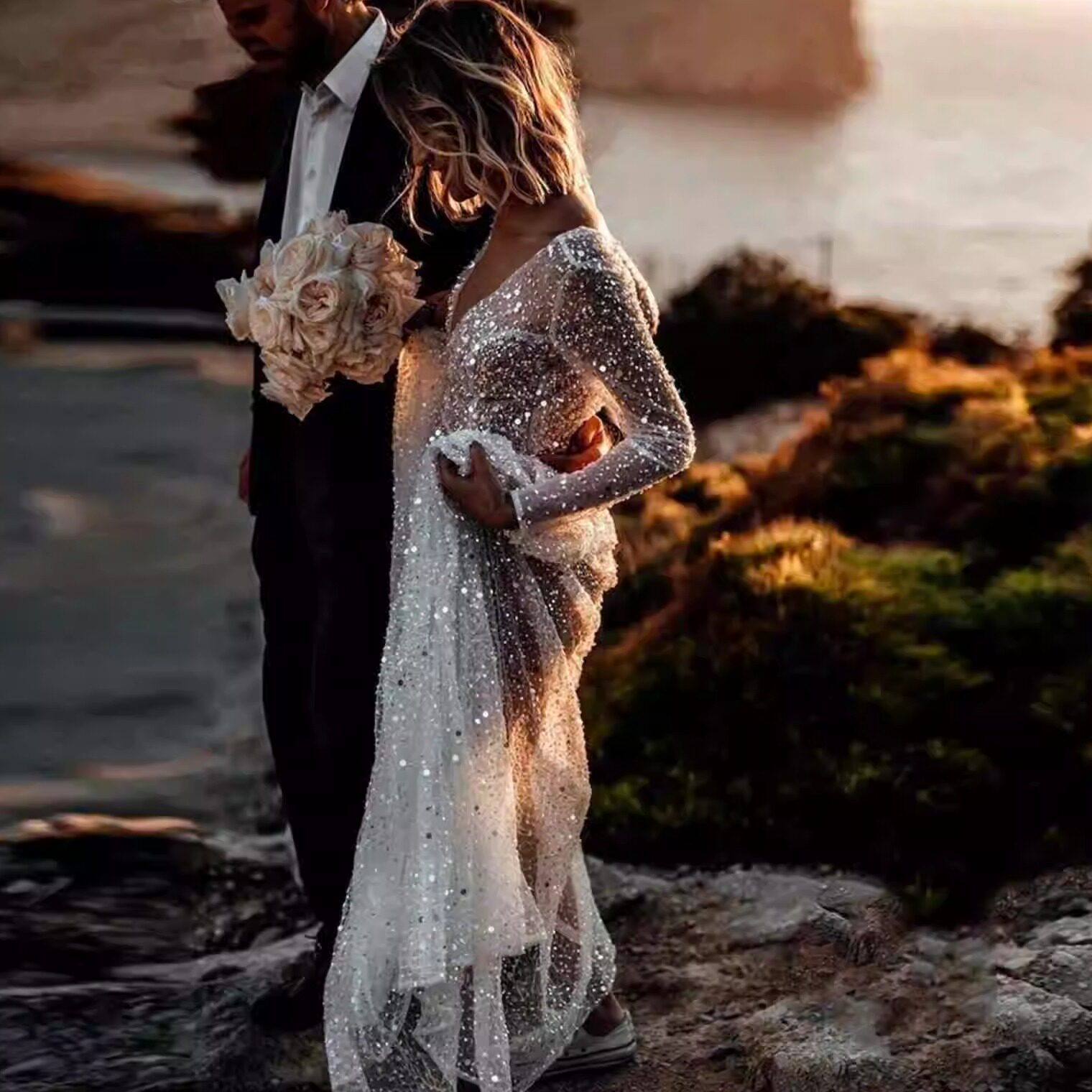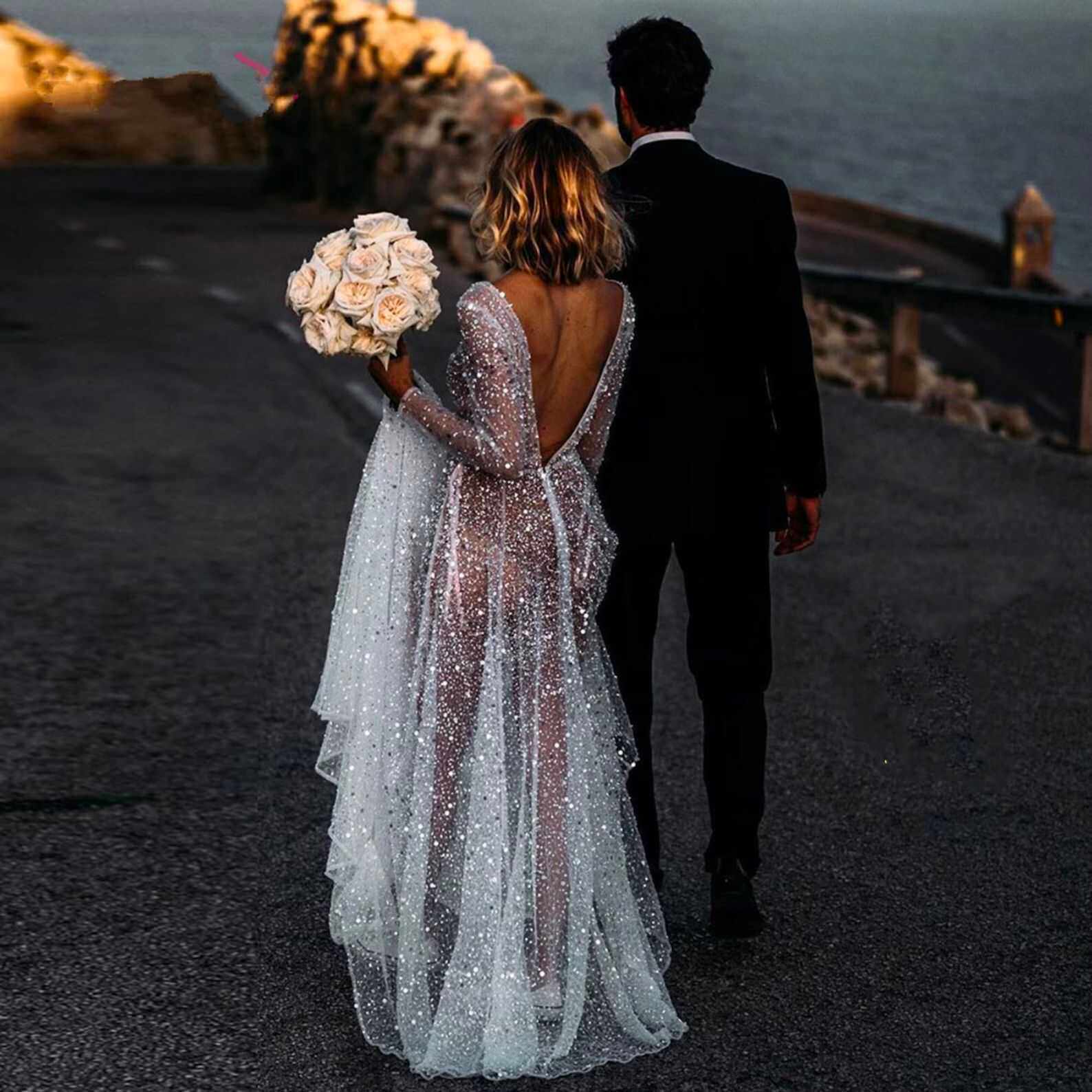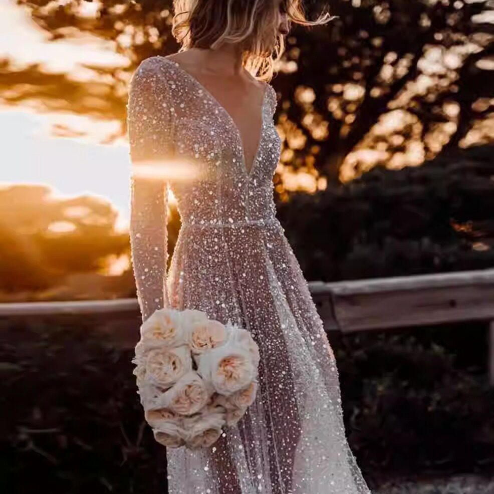 Светлая пряжа блестящая звездная маленькая платья юбка сексуальное брусное свадебное платье кружево