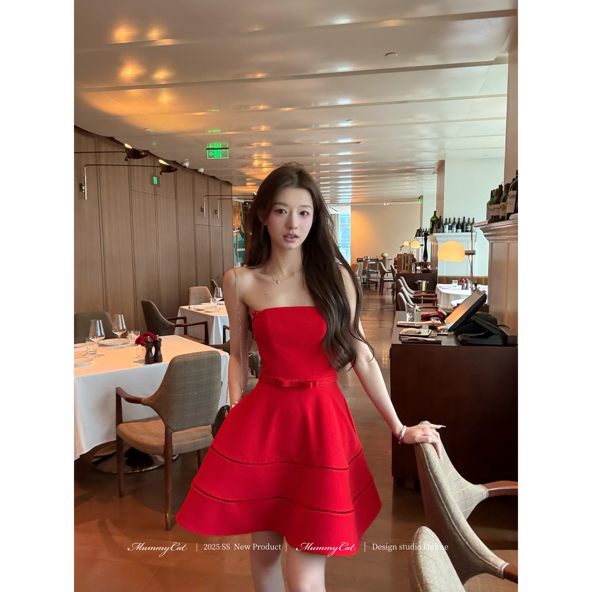 Мама кошка откладывает яйца [мисс Донна] Высококачественное и элегантное платье без бретелек.
