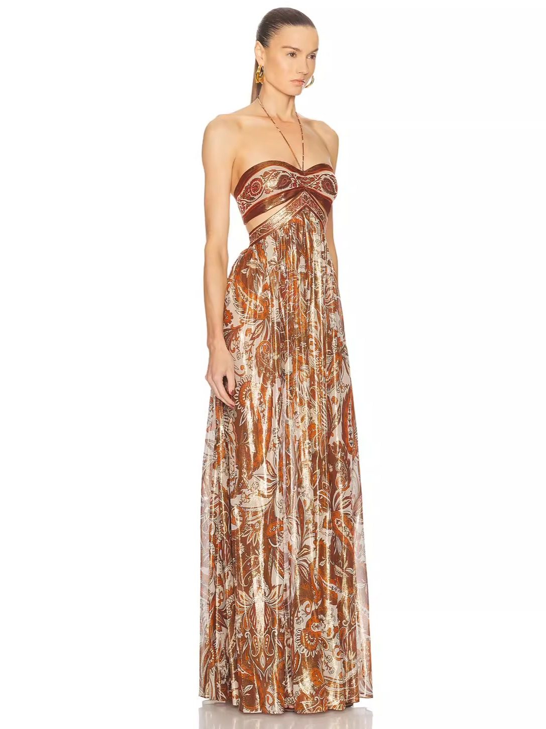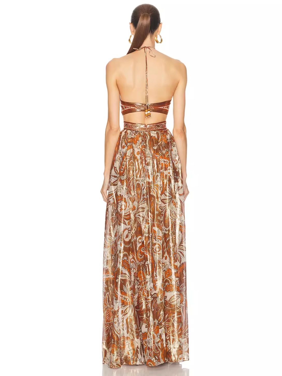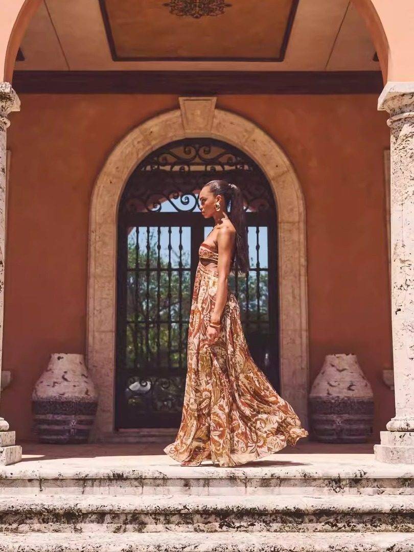 Летнее розовое платье с французским ретро-принтом и висячим воротником, темпераментный тонкий топ без спинки, праздничная длинная юбка морская