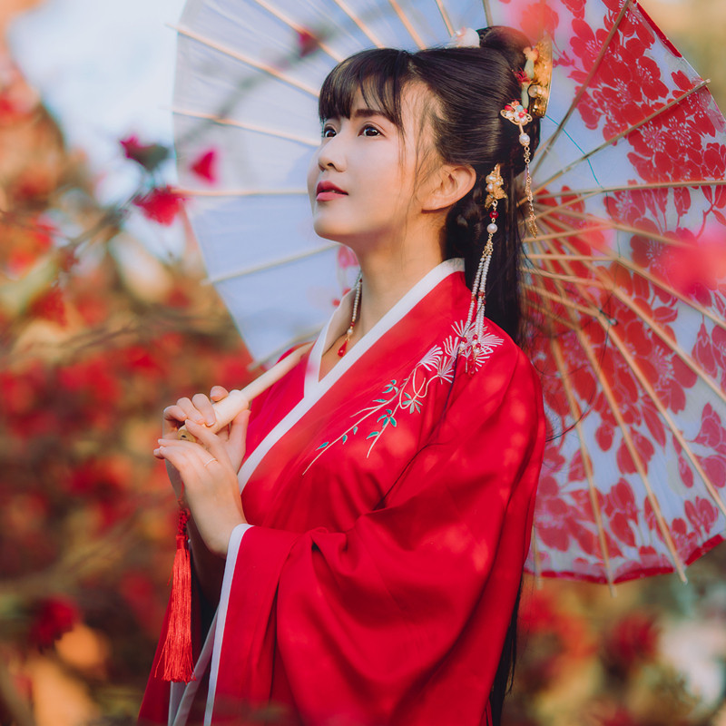Songlu-Autumn и Winter традиционная женская ханфу для женщин двойной обмоток 裾 Slimming и тонкий красный перекресток Qi Taist