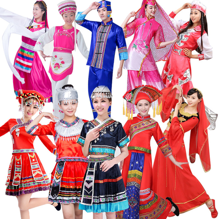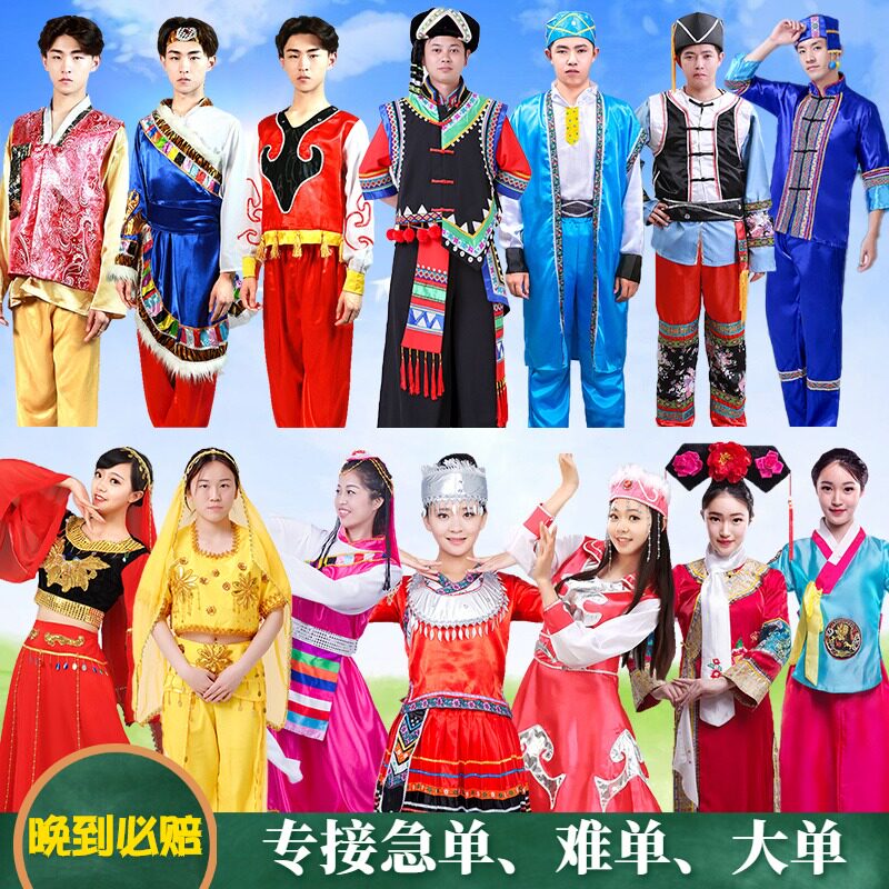 56 Монгольский тибетский Синьцзян Чжуан Чжуан Мяо народные мужчины меньшинства мужская и женская одежда для взрослых танцевальных служб 1 Лизинг 1