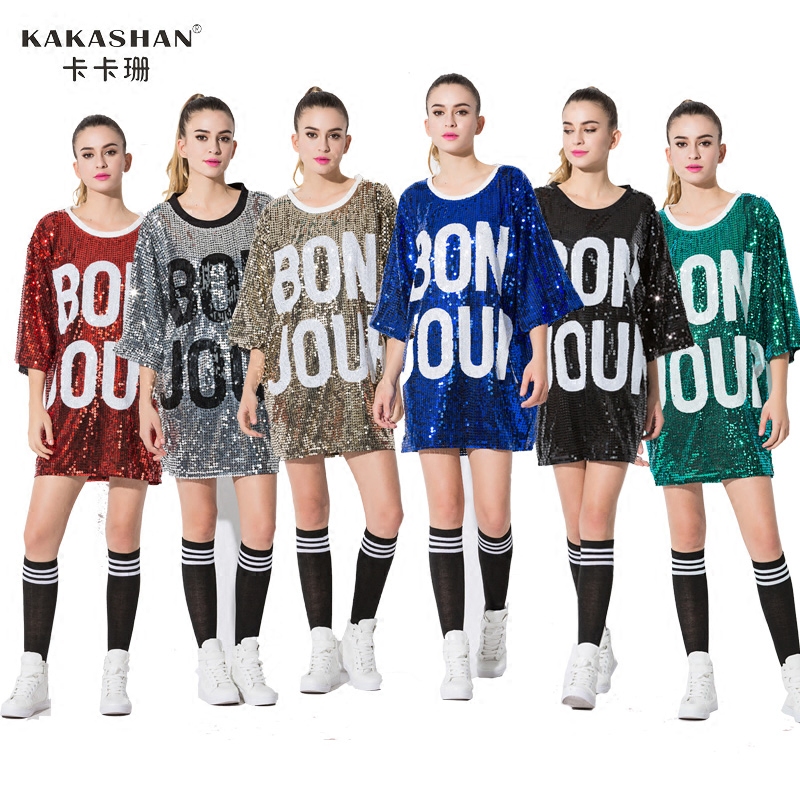 Костюм, блестки для ногтей, современная футболка в стиле хип-хоп, в корейском стиле