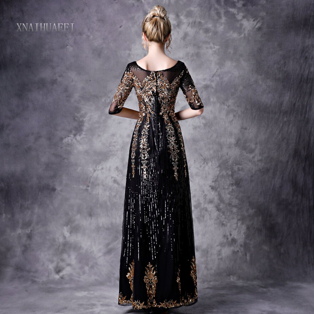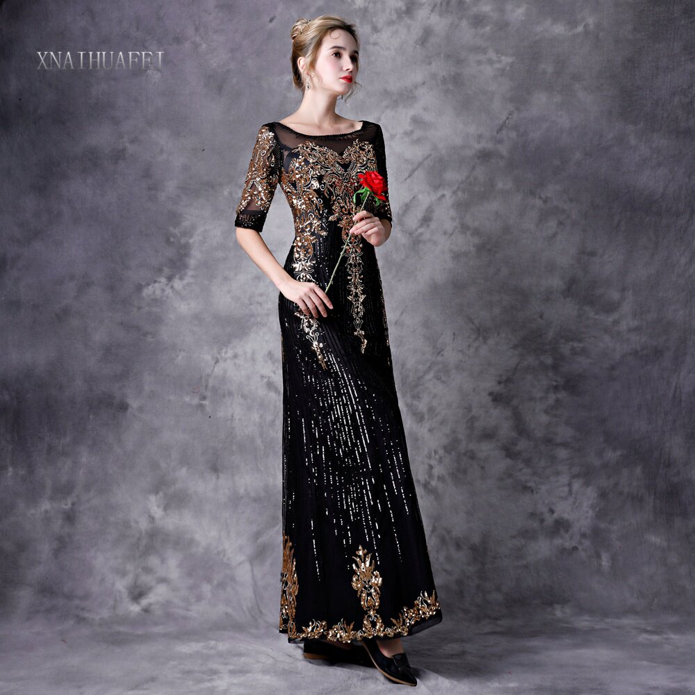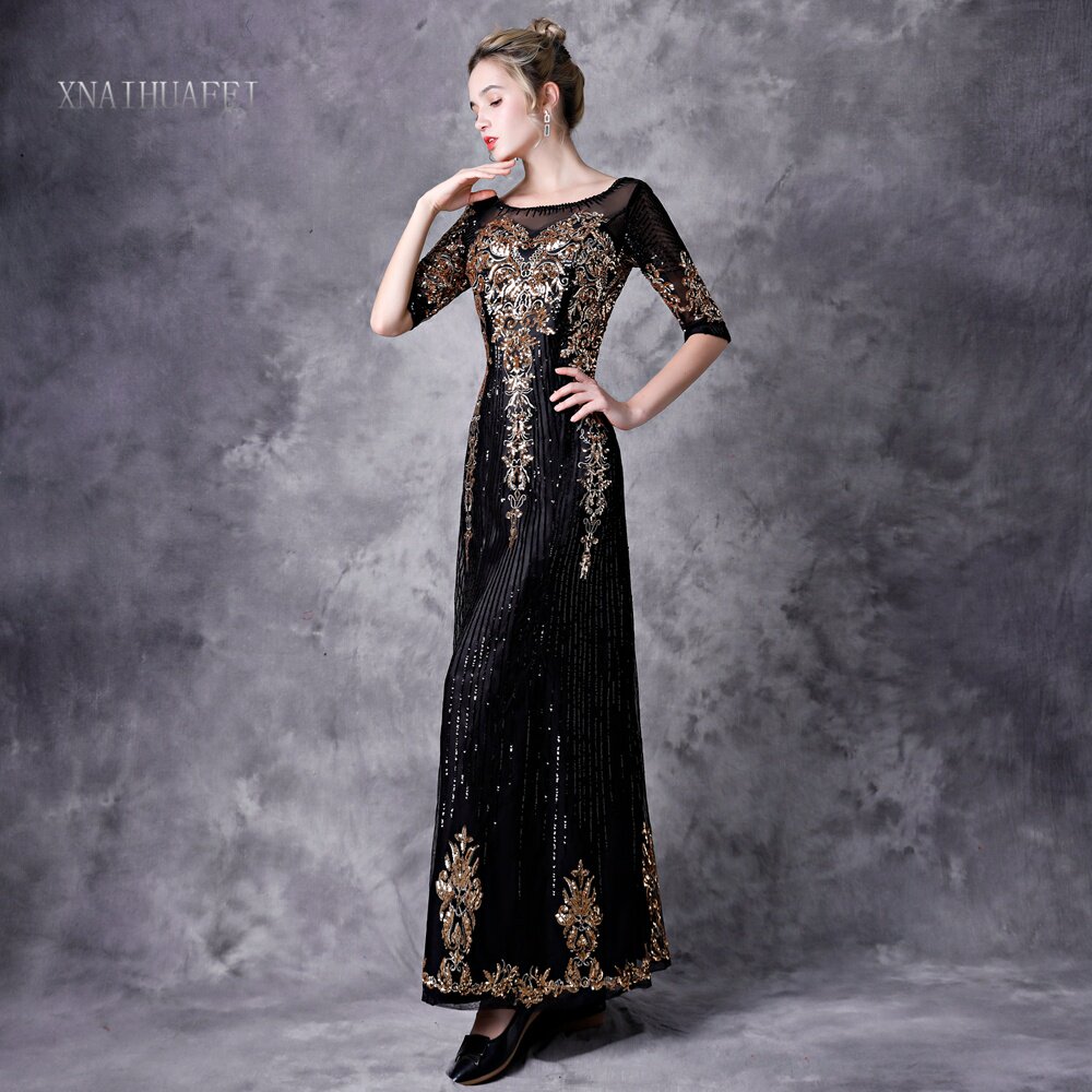 Черное демисезонное элегантное вечернее платье, длинная юбка, коллекция 2022