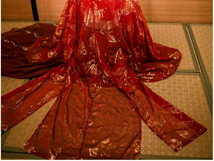 Рубашка с бабочкой горячей золотистого рукава (Реальная вещь темно -красная, а красный свет красныйПолем