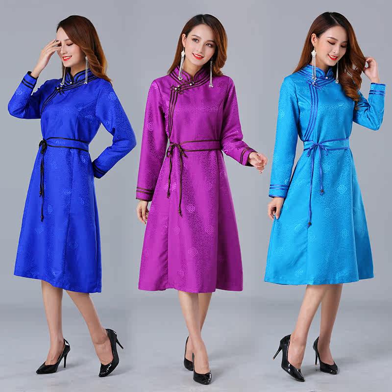 Весна и летняя модная монгольская костюм с длинными рукавами Новая традиционная монгольская мангоя женская пряжка ручной работы в середине длины ежедневная одежда повседневной жизни