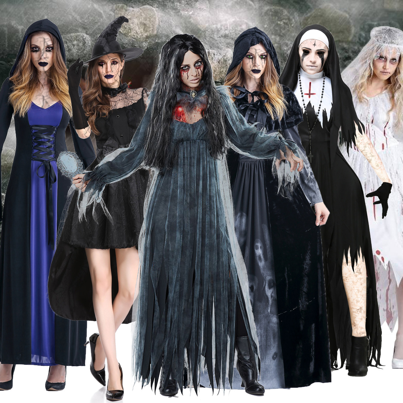 Хэллоуин костюм ужас кровавый женский костюм зомби зомби доктор медсестра призрак невеста потому сценический костюм дети