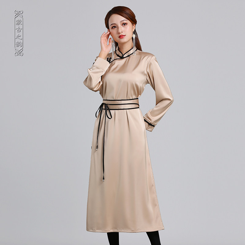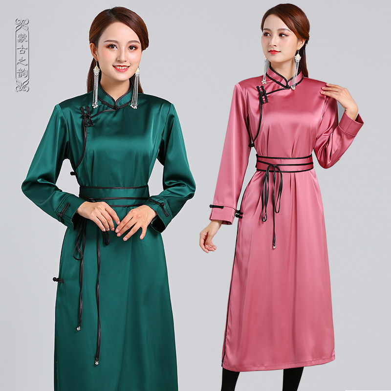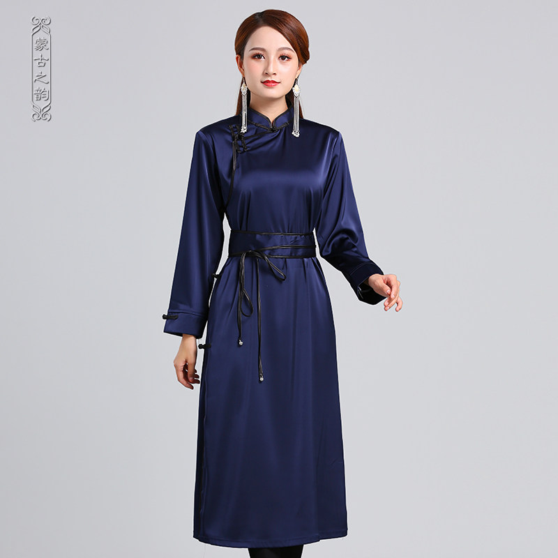 Монгольское платье элемента длинные весенние и летние модели моделирование пряжки шелк традиционный монгольский хала
