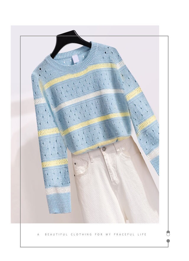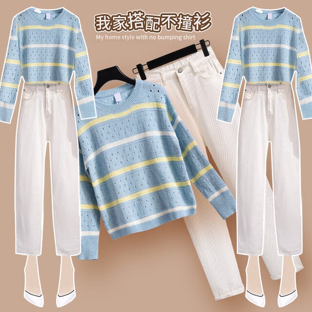 Синий свитер, демисезонный ретро трикотажный комплект, 2021 года, оверсайз