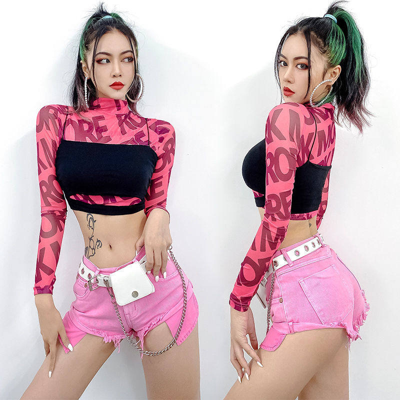 Новые костюмы производительности DS для женщин Gogo одежда для флуоресцентной цветной сетки перспектива пупочная сета