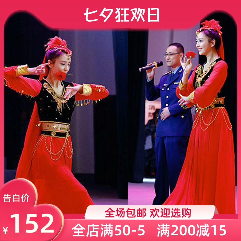 Тот же Синьцзянский танцевальный костюм Тонг Лии для экзаменов по искусству для девочек для вступительного танца этнических меньшинств. Уйгурский танцевальный костюм с большой распашной юбкой.
