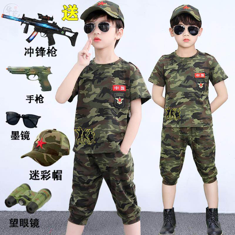 Детский камуфляжный комплект для мальчиков, летняя одежда для школьников для отдыха, короткий рукав