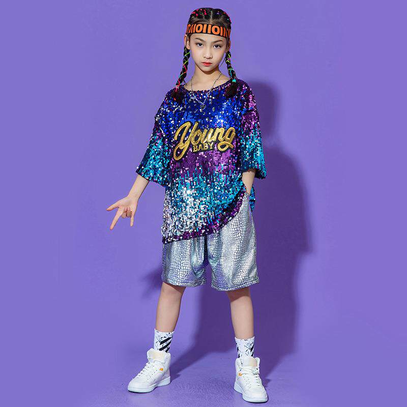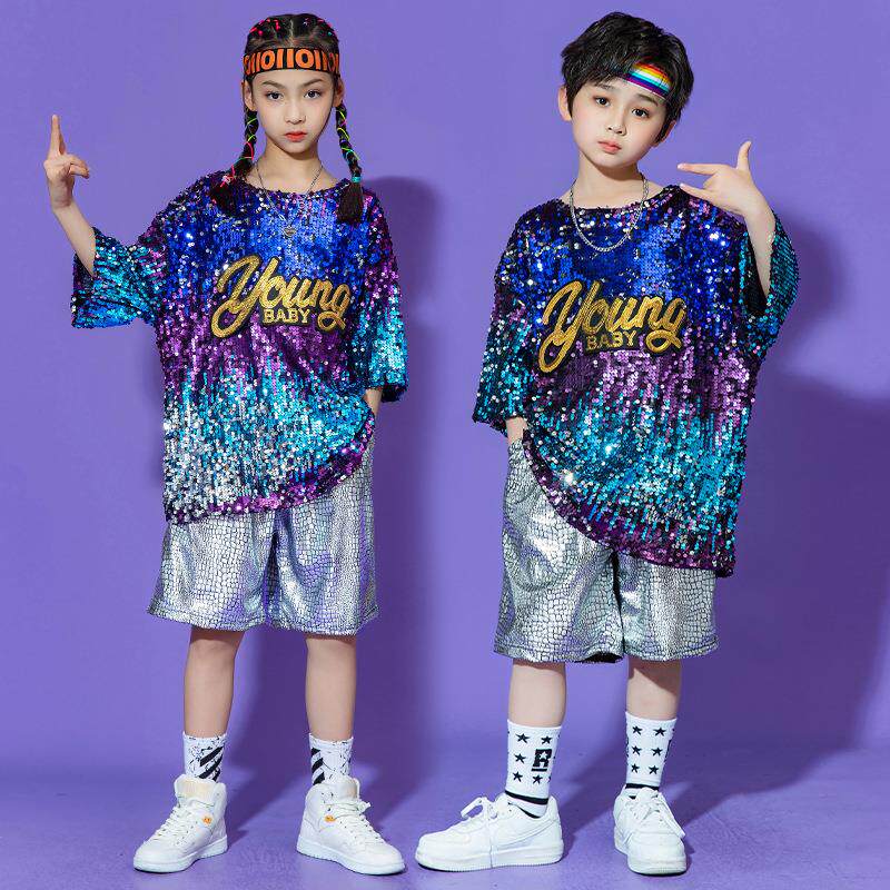 Детский блестящий костюм подходит для мужчин и женщин, комплект в стиле хип-хоп, барабаны для школьников и студентов
