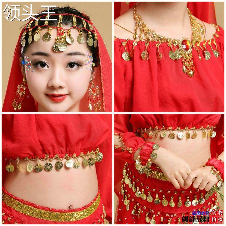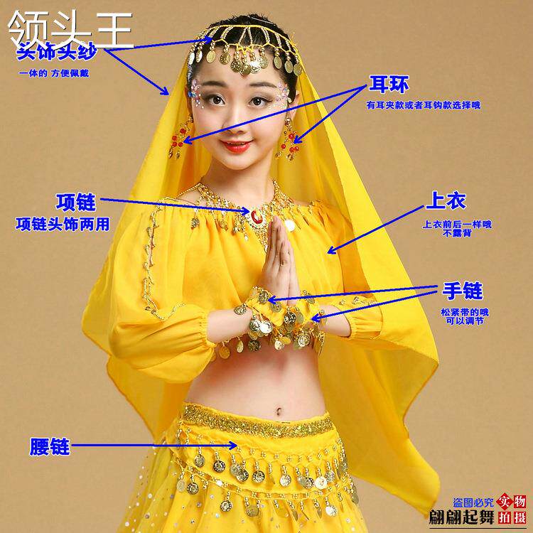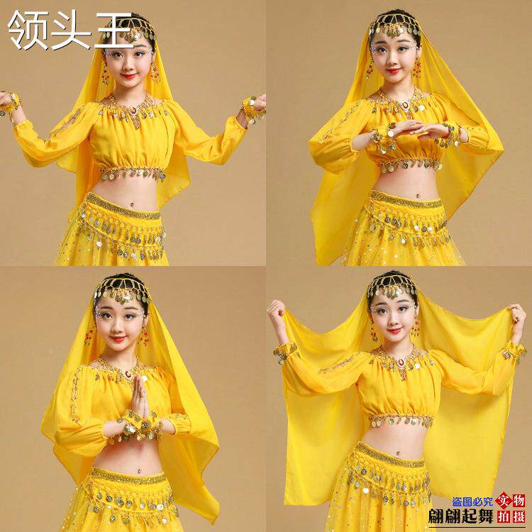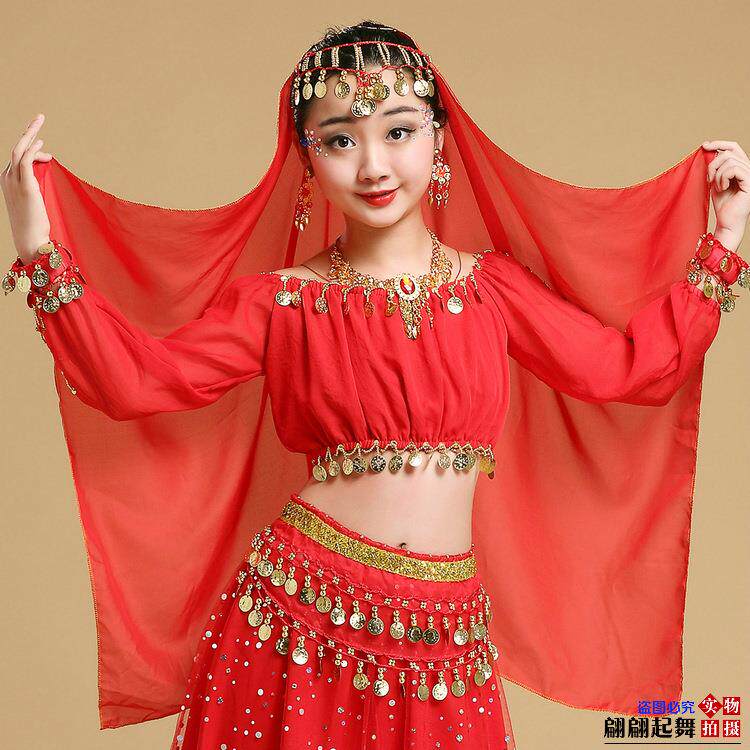 Детский костюм, лонгслив, аксессуар для волос, ожерелье и серьги, браслет, Индия