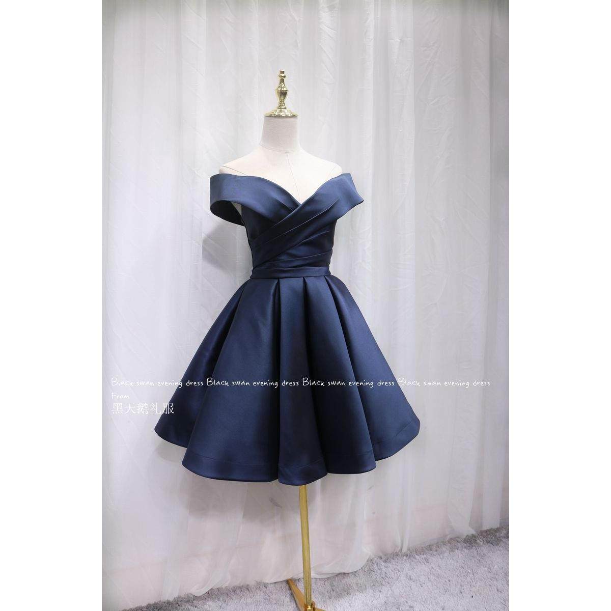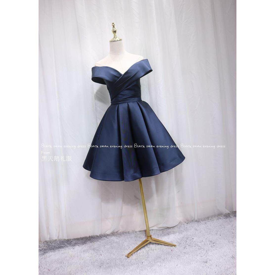 Модное элегантное синее вечернее платье, коллекция 2022, открытые плечи