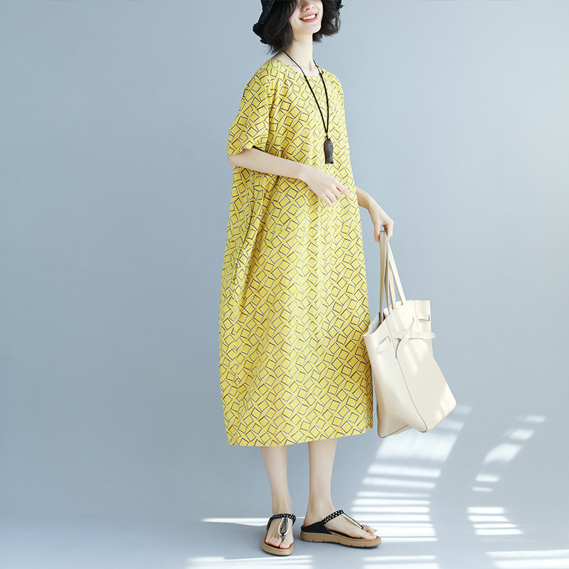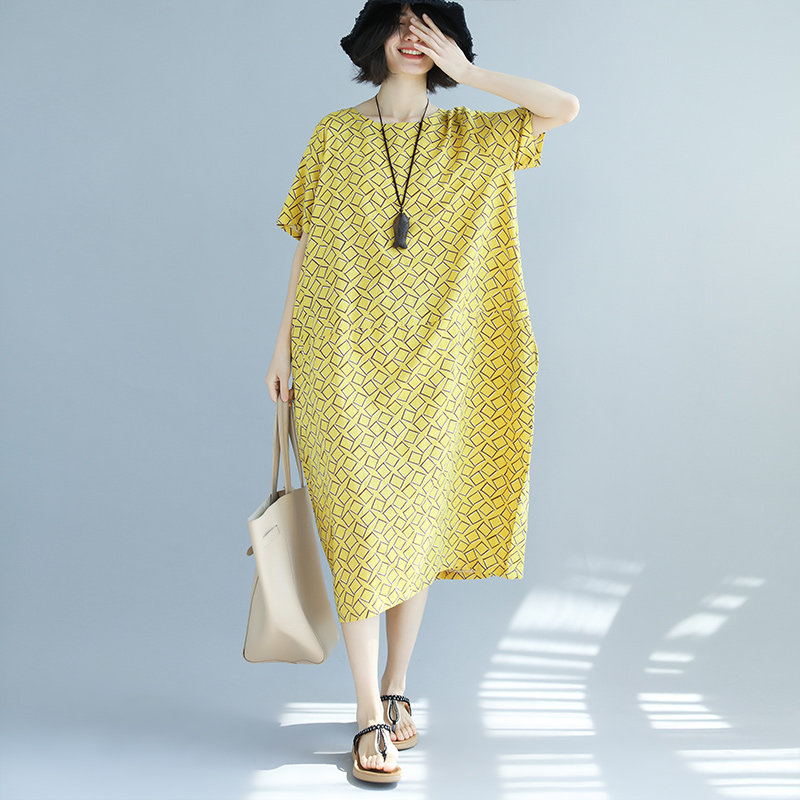 Летняя одежда, платье, длинная юбка, большой размер, из хлопка и льна
